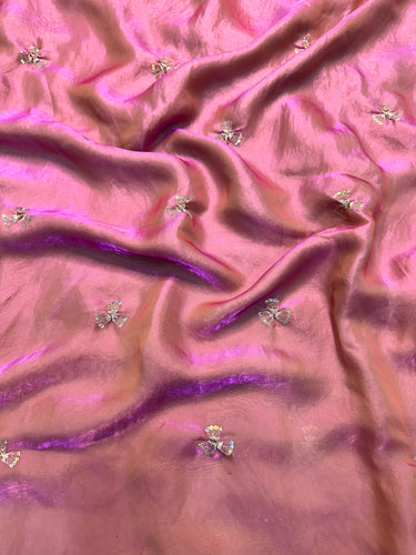 Charming Function Wear Fendy Satin Silk Dual Shaded Sequence Work Flower Butti Fancy Designer Saree