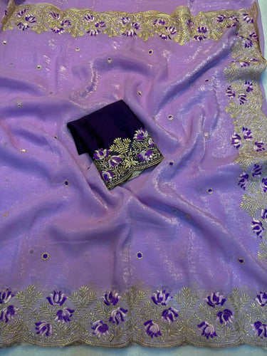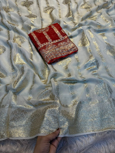 New Party Wear Viscose Georgette Jacquard Zari Work Fancy Designer Saree