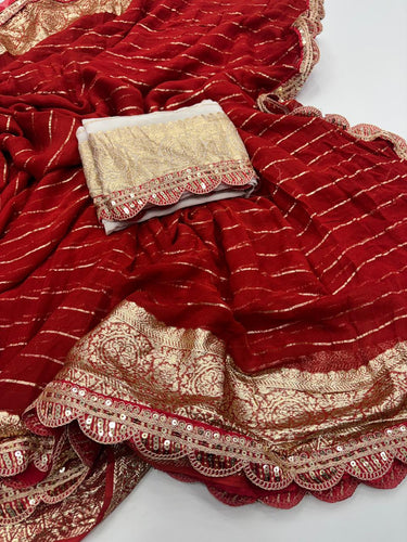 Latest Wedding wear Red Color Viscose Georgette Jacquard Weaving n Sequence Border Work Designer Saree