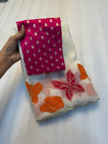 Forbearance White Color Tissue Organza Silk Embroidery Work Fancy Designer Saree With Confounding Blouse Piece