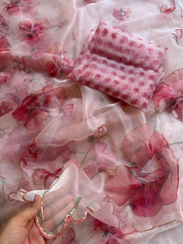 Glamorous Function Wear Peach Colour Soft Organza Silk Printed Hand Work Fancy Designer Saree With Unstitched Blouse