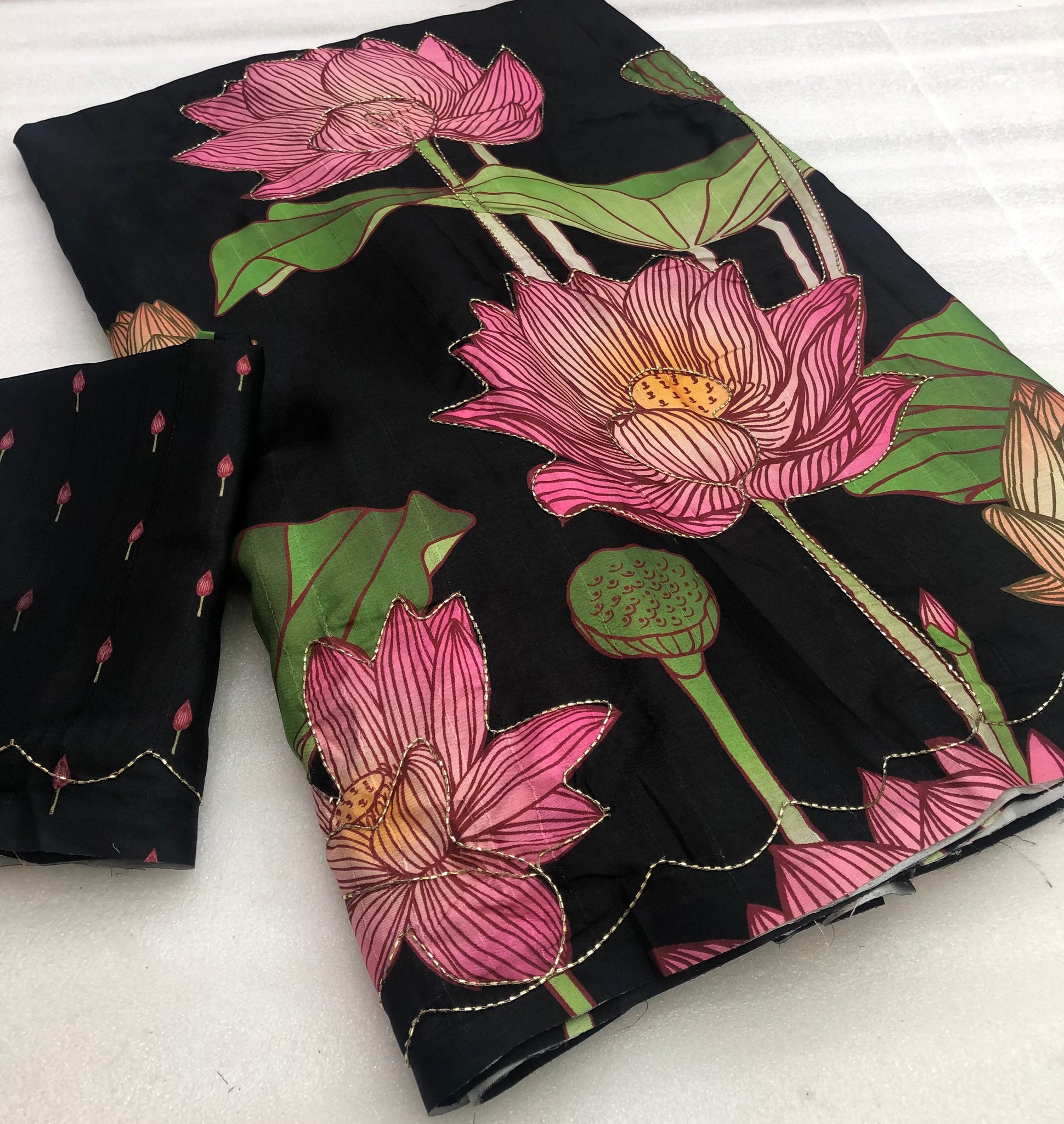 Saree Work : Lotus Floral Digital Print Handwork With tussle on pallu