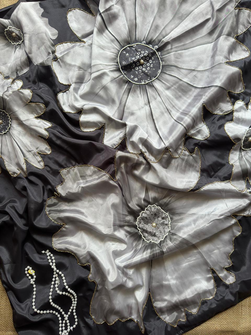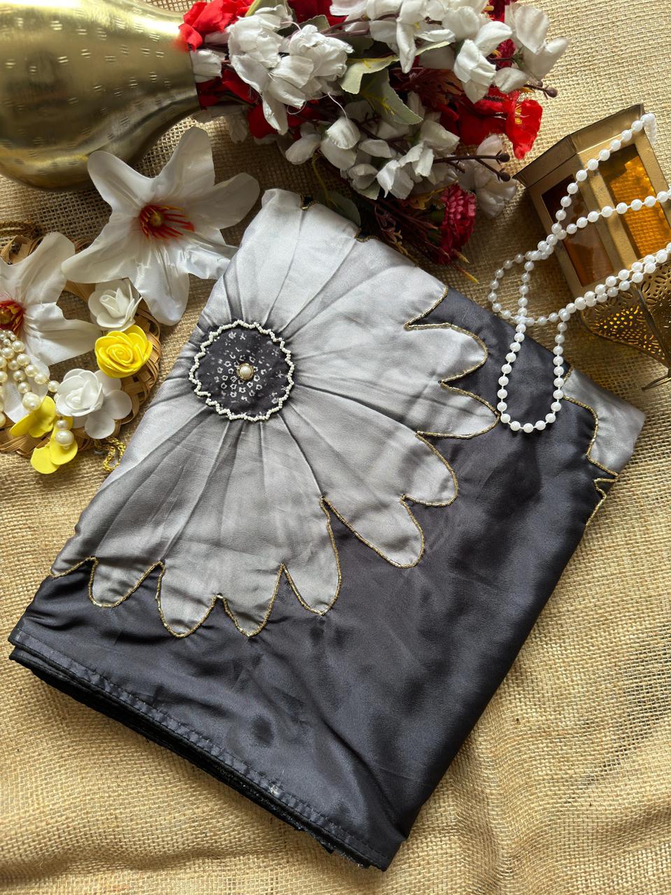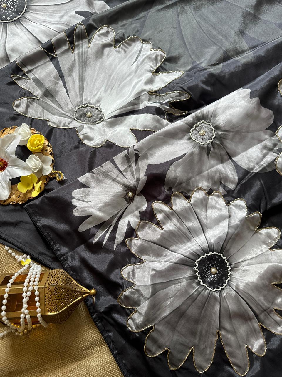 Saree Work : Digital Print Moti Bits n Cut Dana Handwork