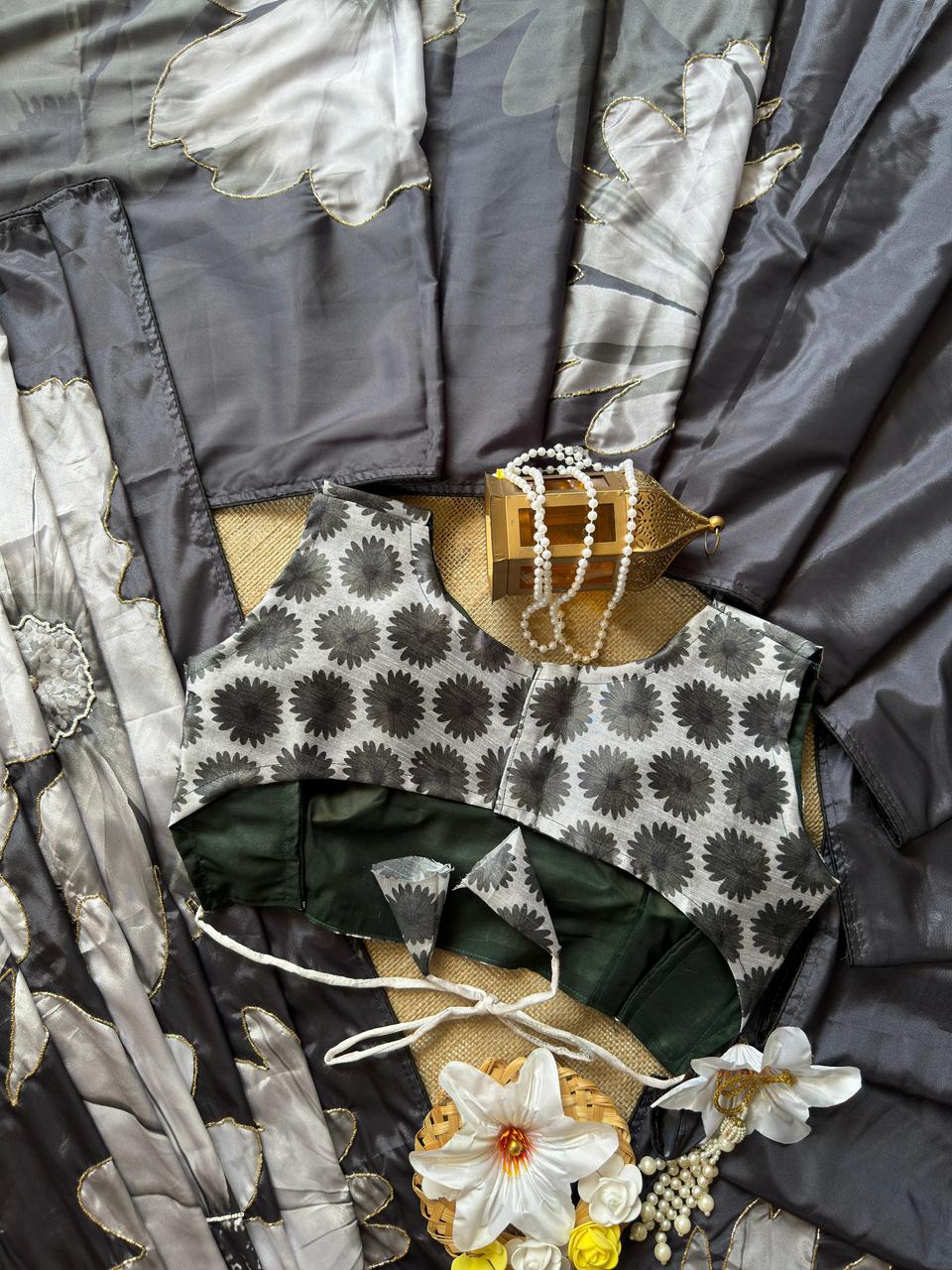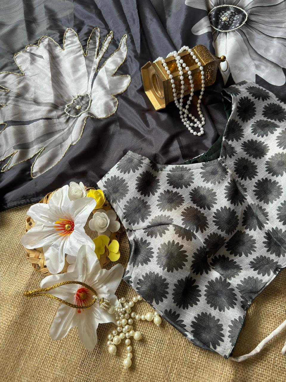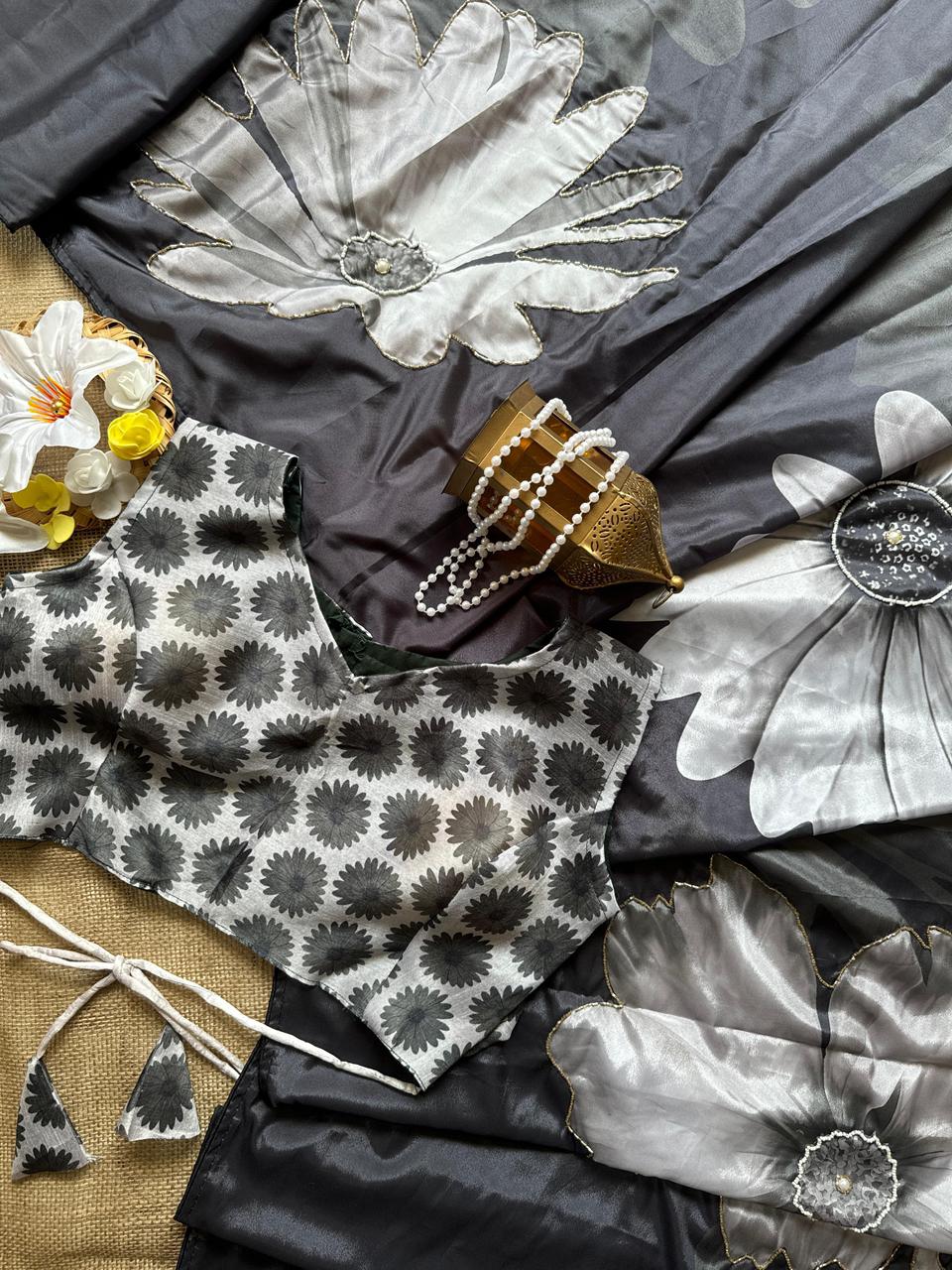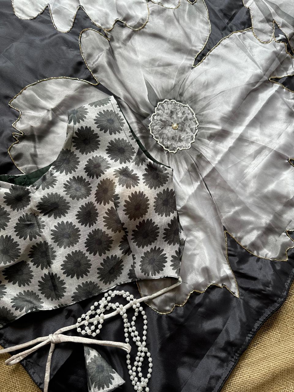 Saree Work : Digital Print Moti Bits n Cut Dana Handwork