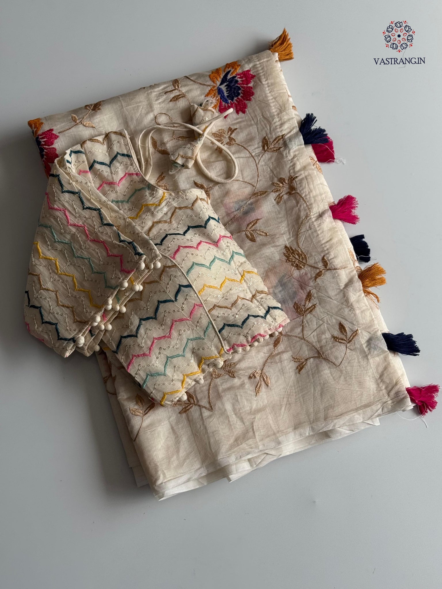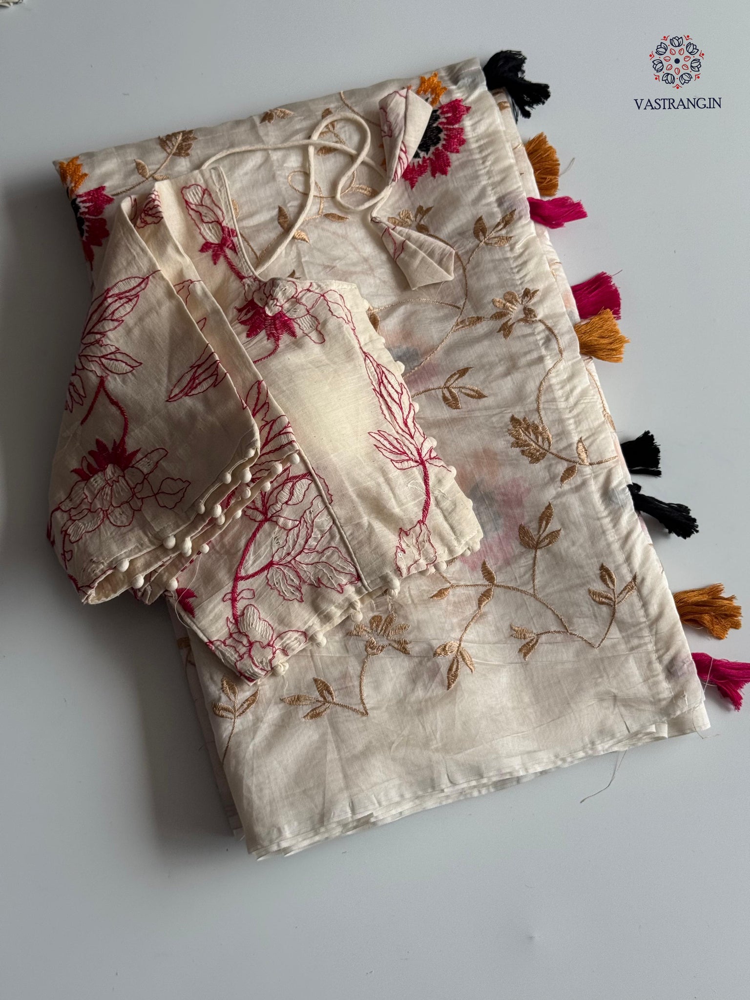 Cotton tassels attached on saree