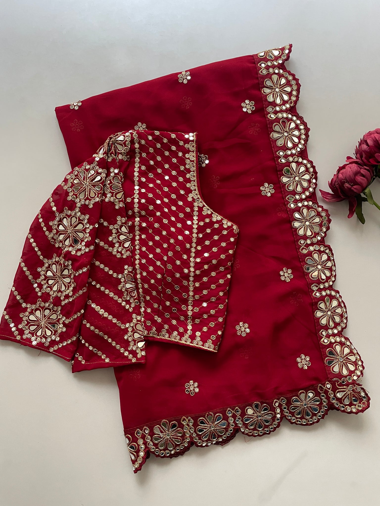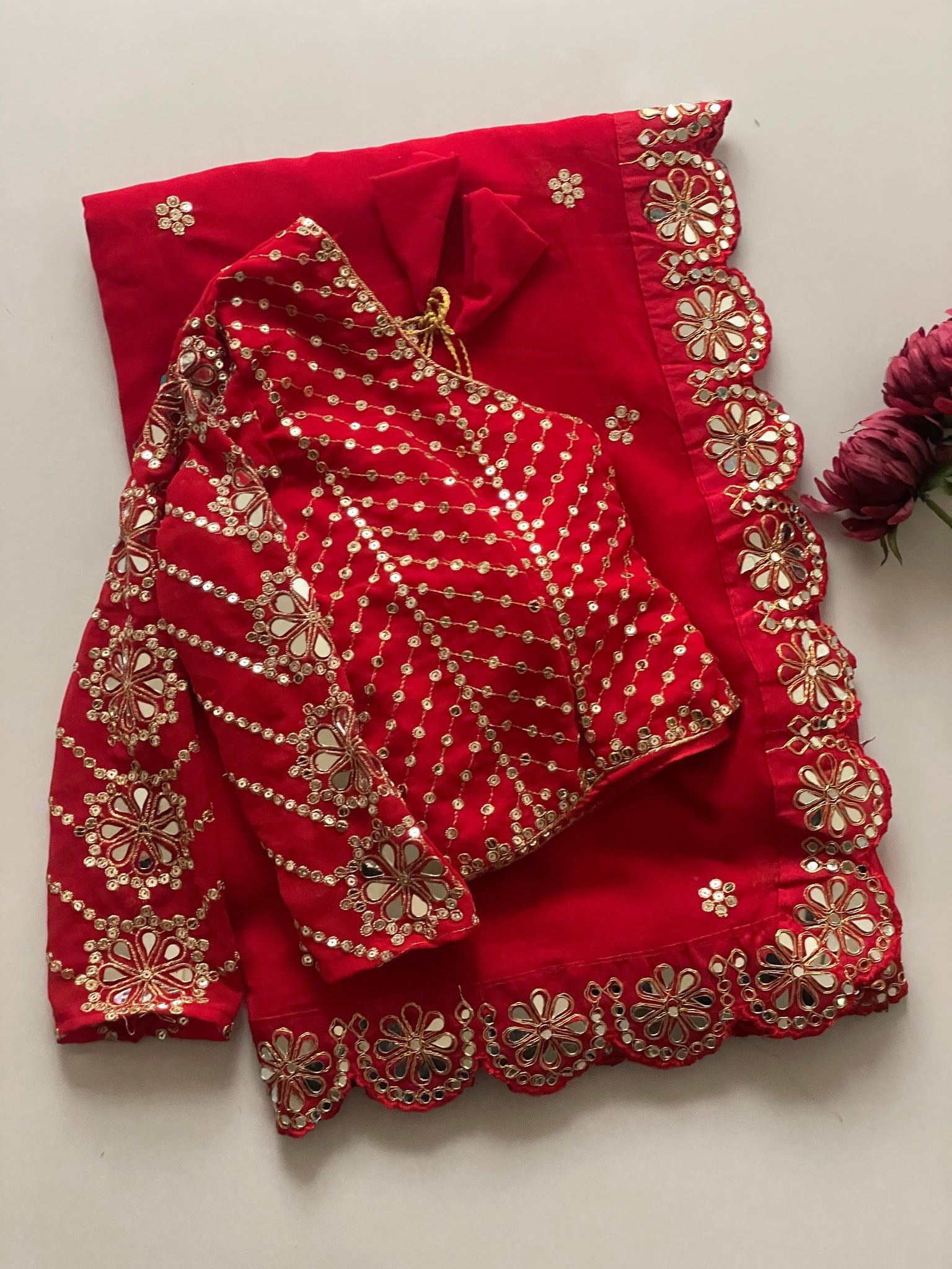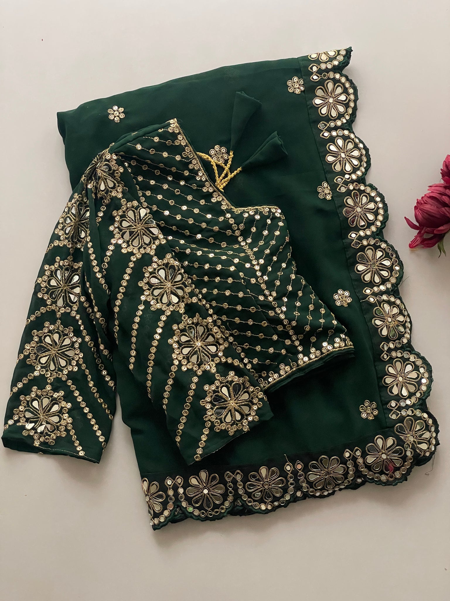 ORIGINAL MIRROR WORK DONE IN LACE BORDER,BLOUSE N SLEEVES