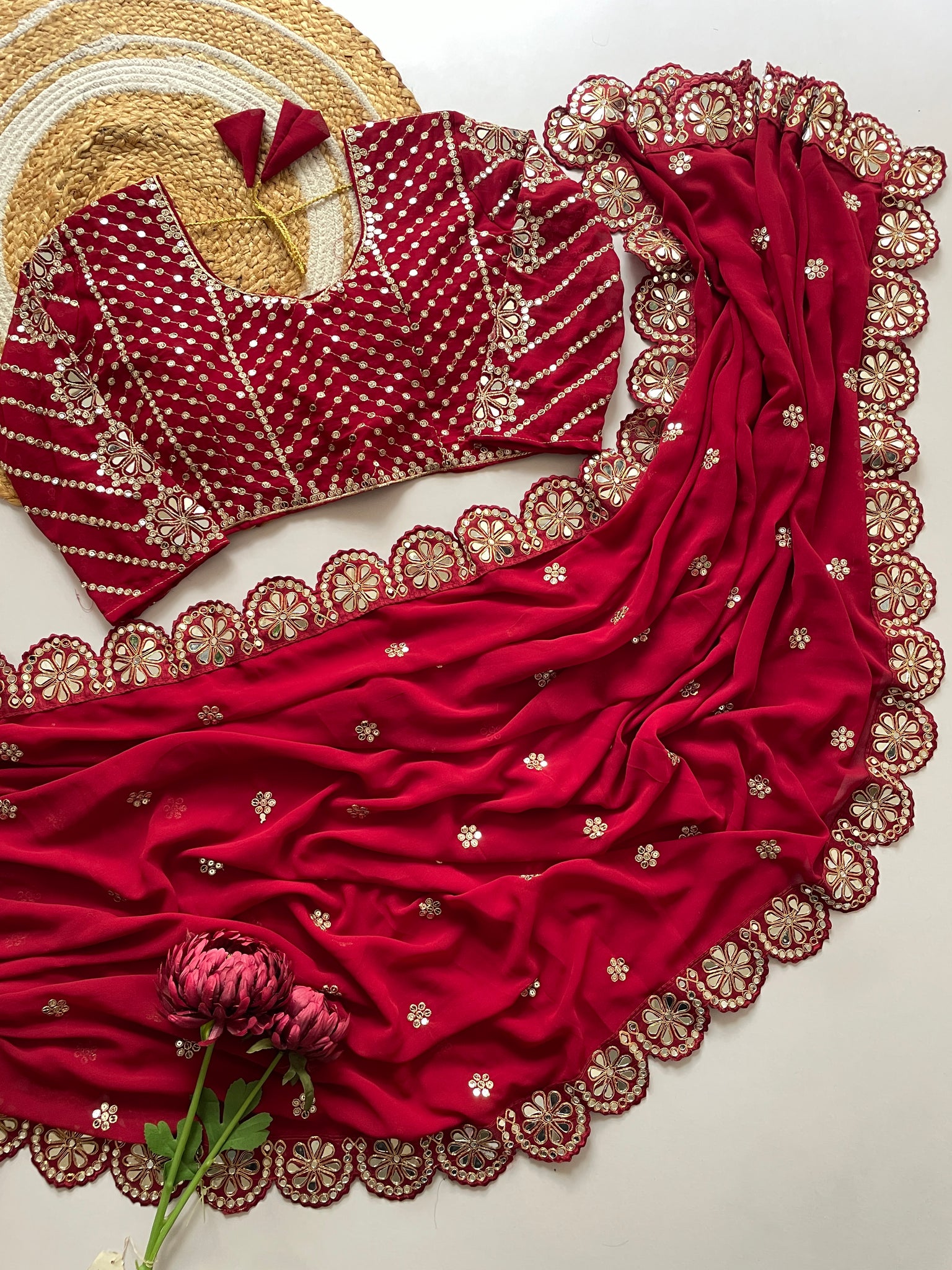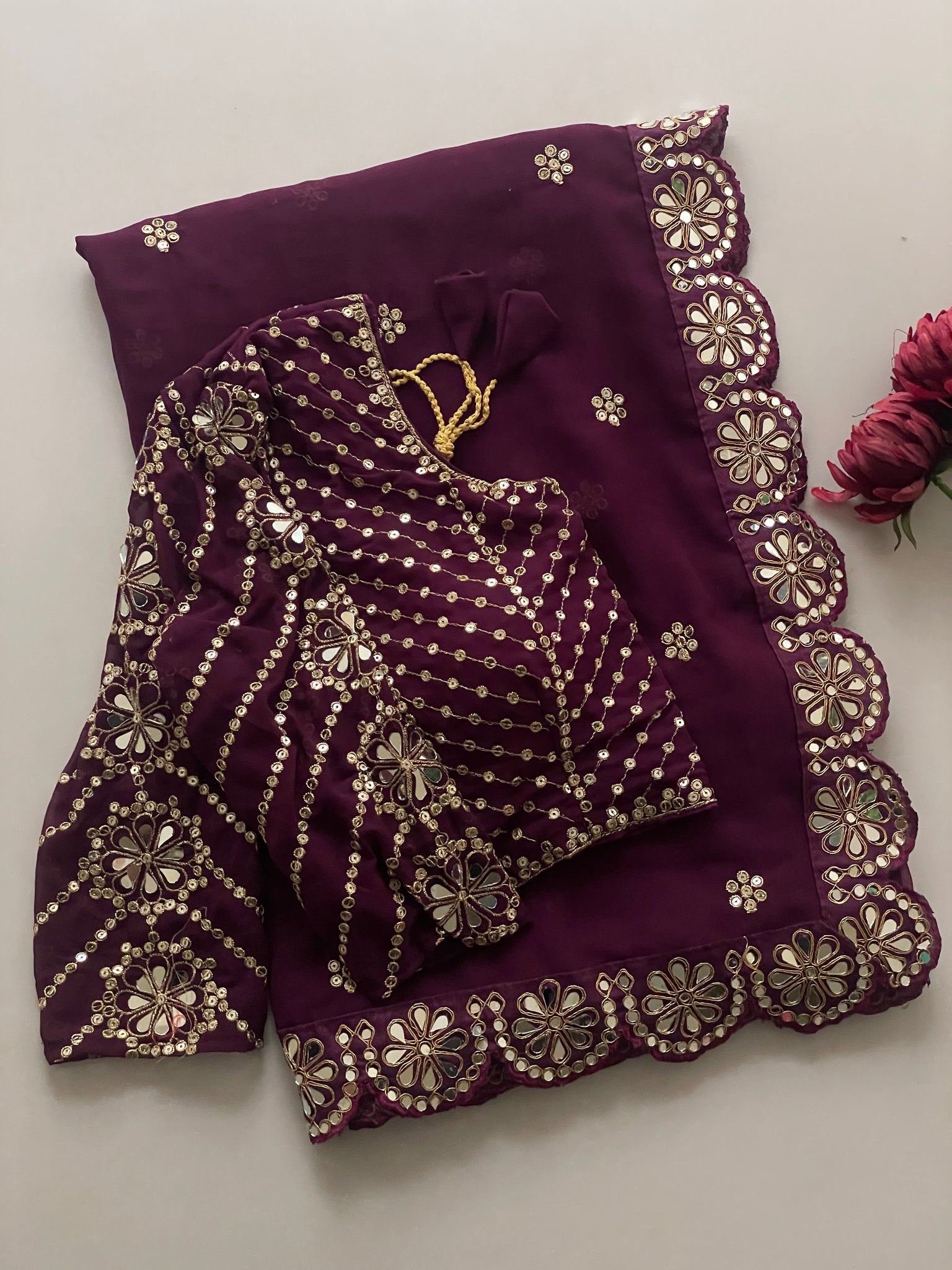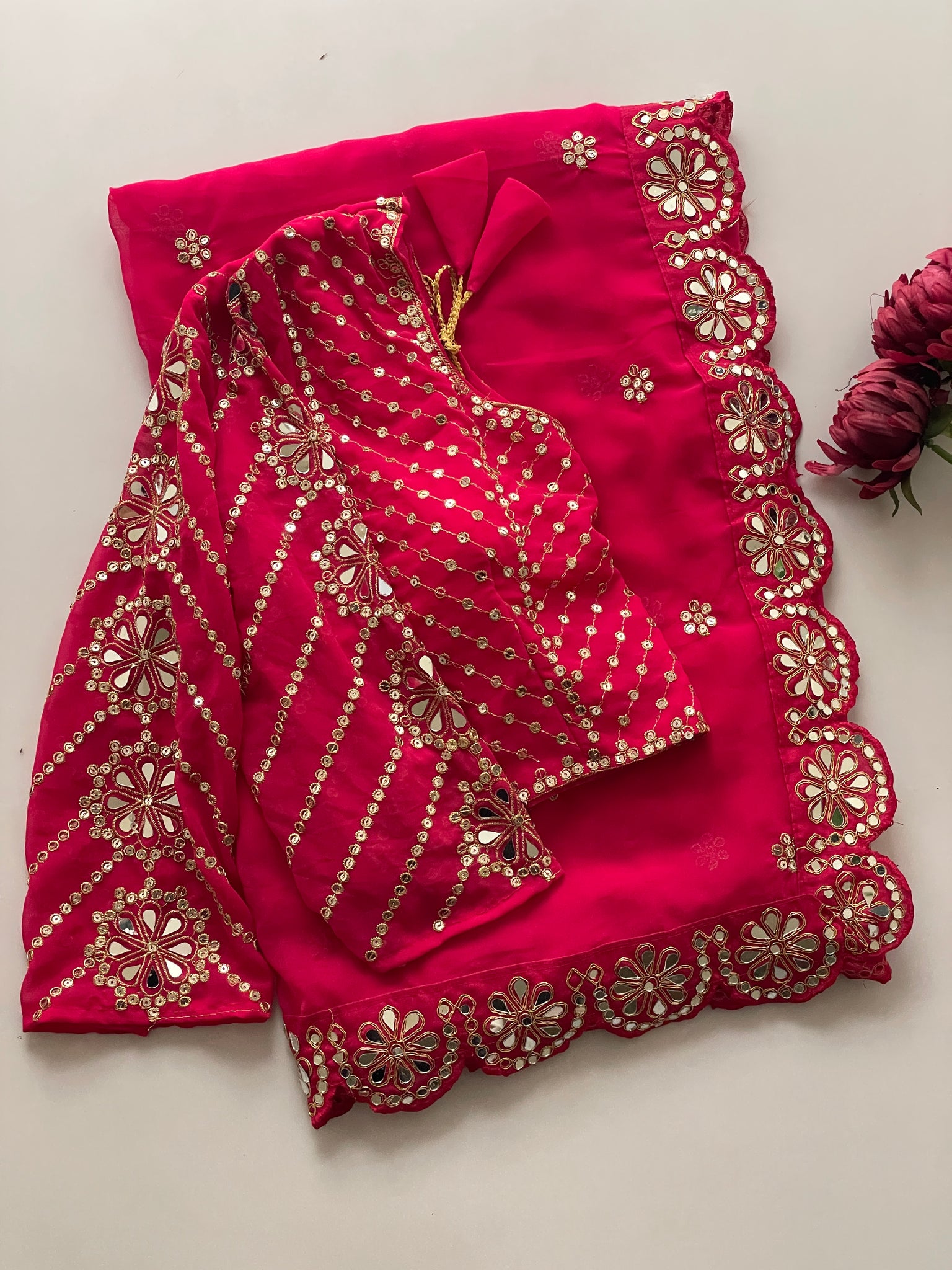 ORIGINAL MIRROR WORK DONE IN LACE BORDER,BLOUSE N SLEEVES