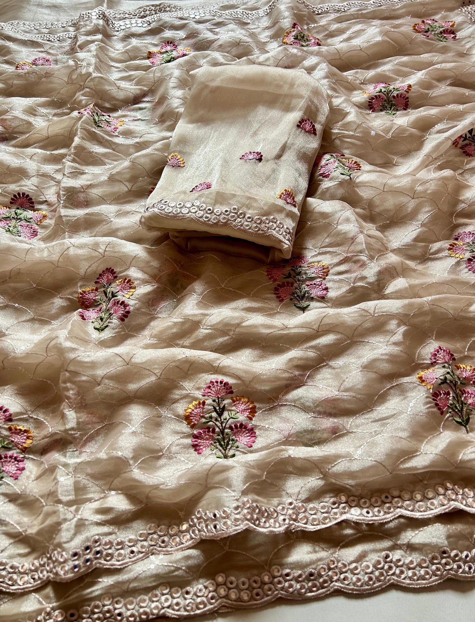 Saree Work : Sequence n Mirror With Thread Work