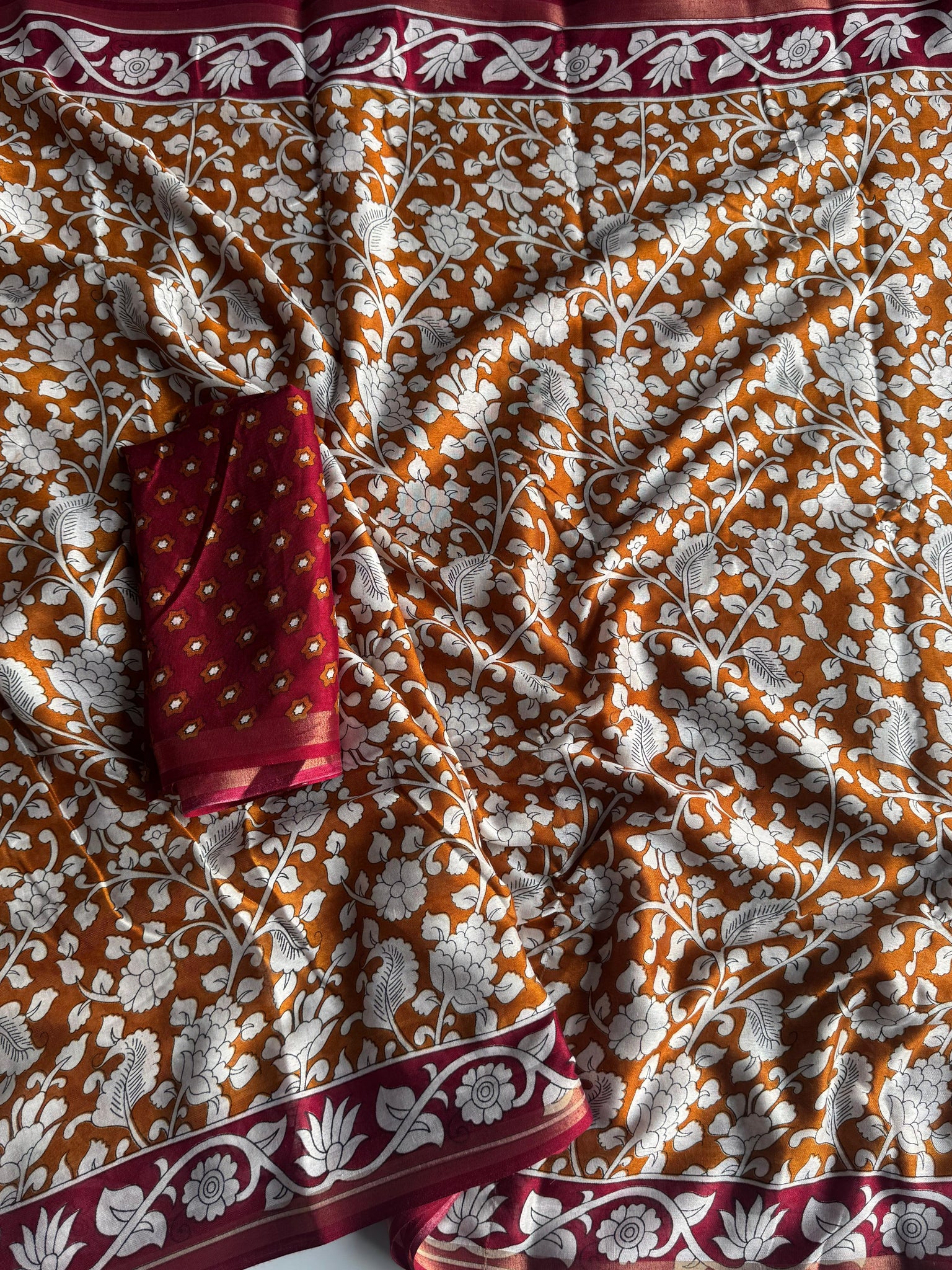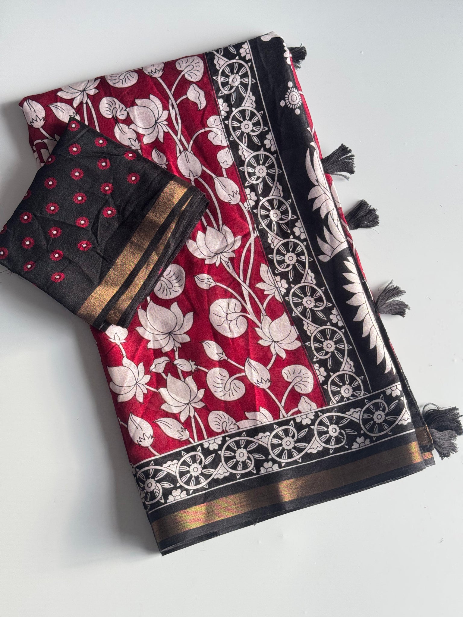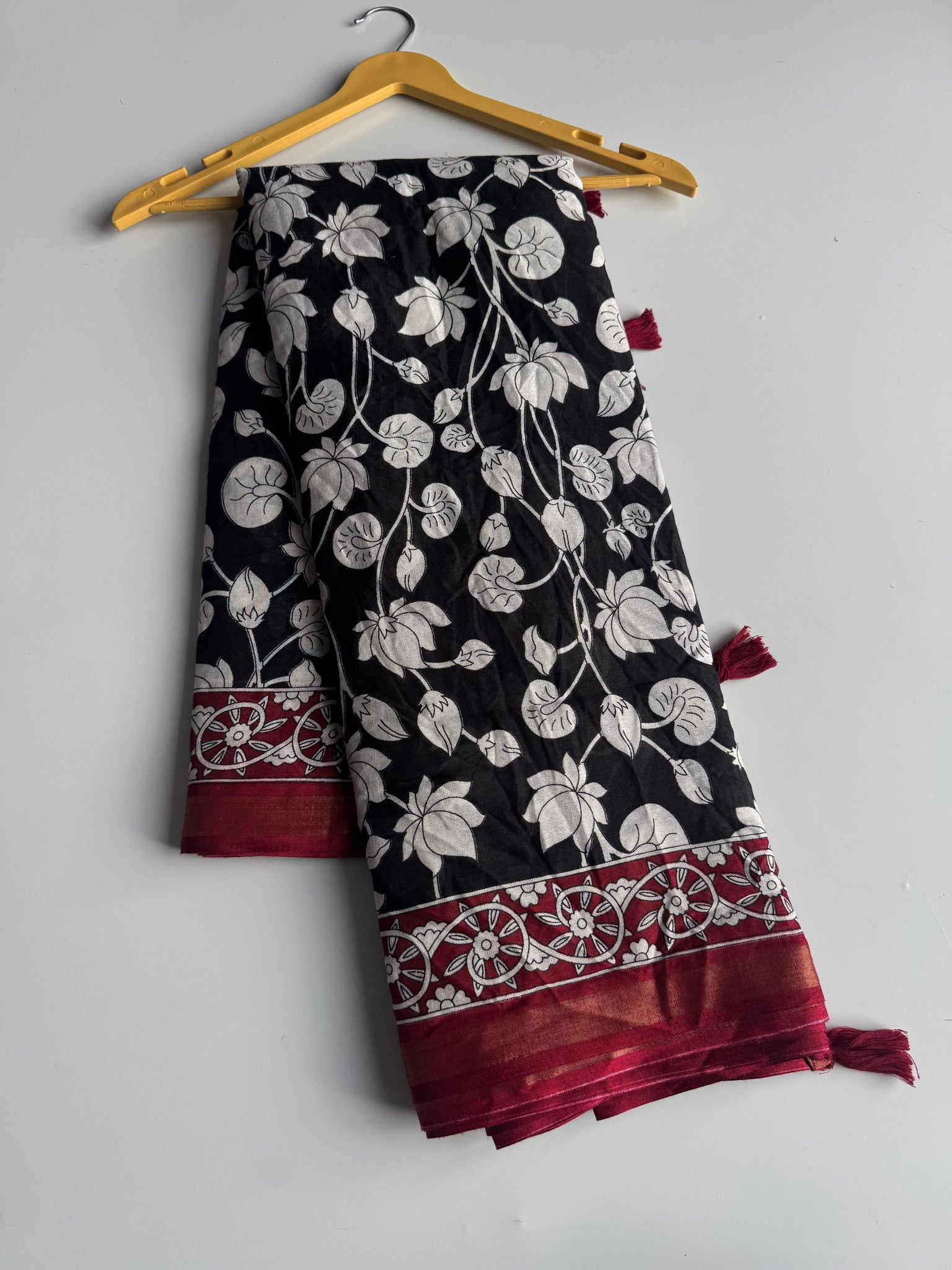 Saree Work : Floral Pattern With Rich Pallu Tussel n Zari Jacquard Border Work