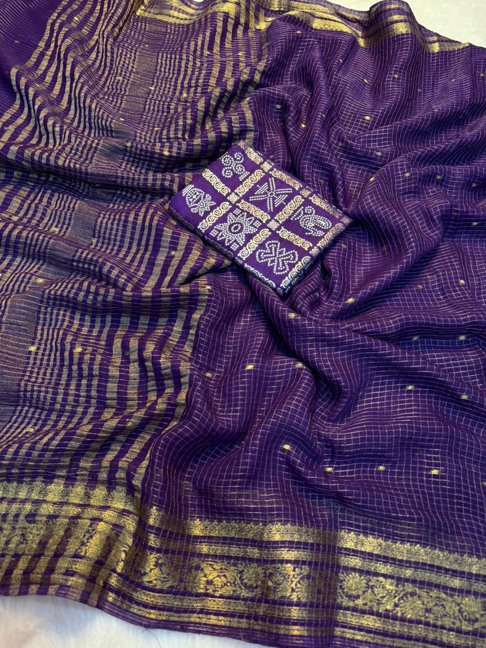 Blouse Work : Jacquard Weaving Work Checks Design Rich Pallu