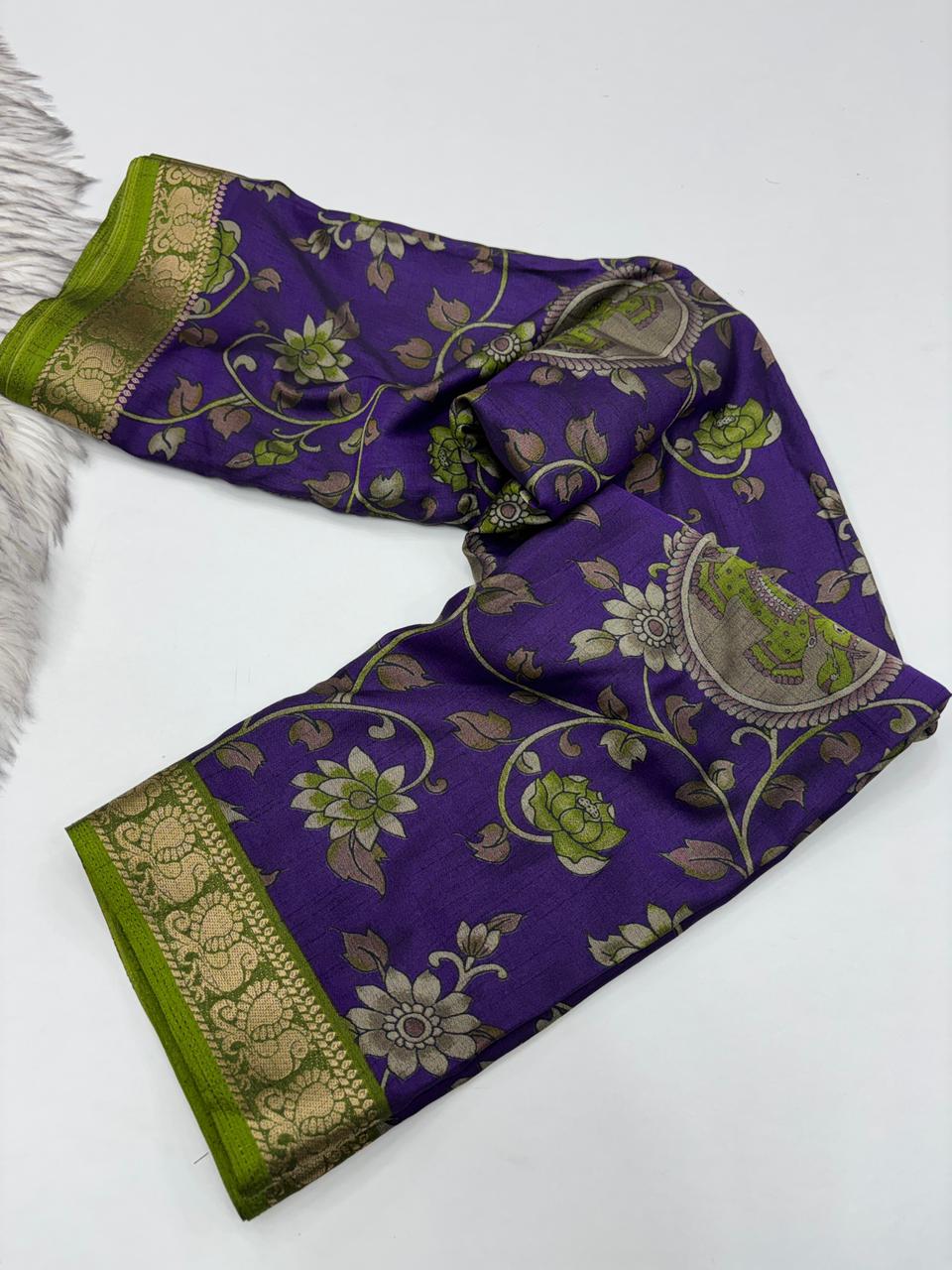 Blouse Work : Kalamkari Print With Mangalkari Zari Border
