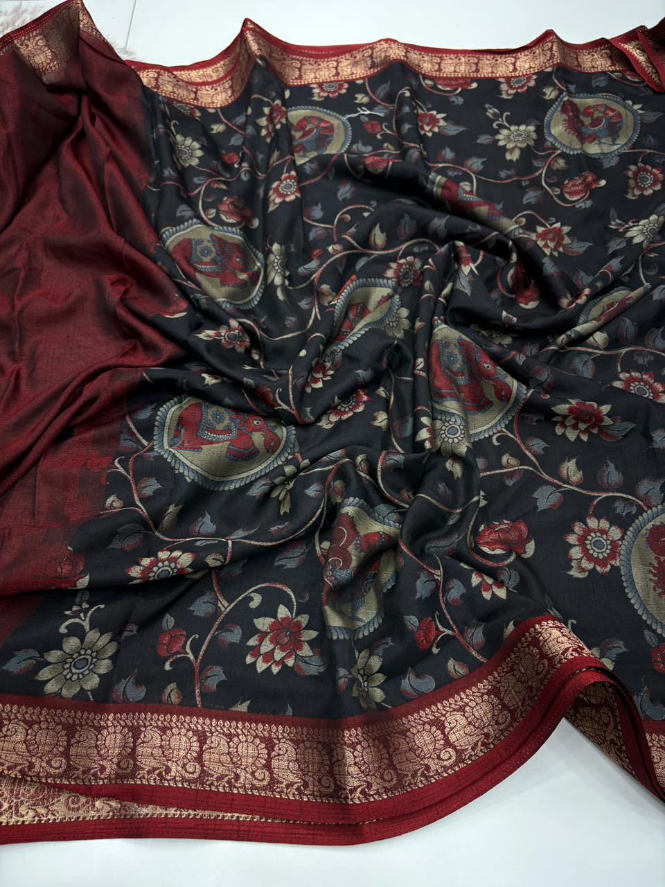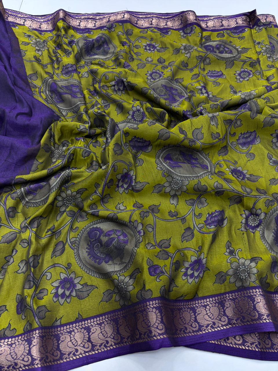 Saree Work : Kalamkari Print With Mangalkari Zari Border