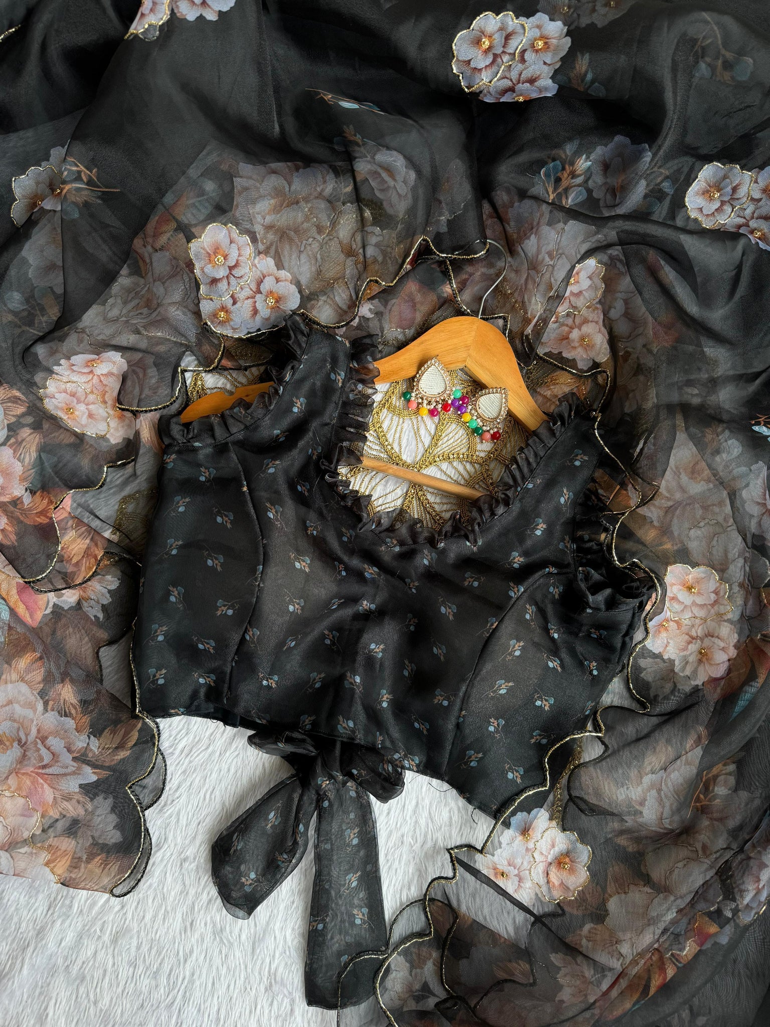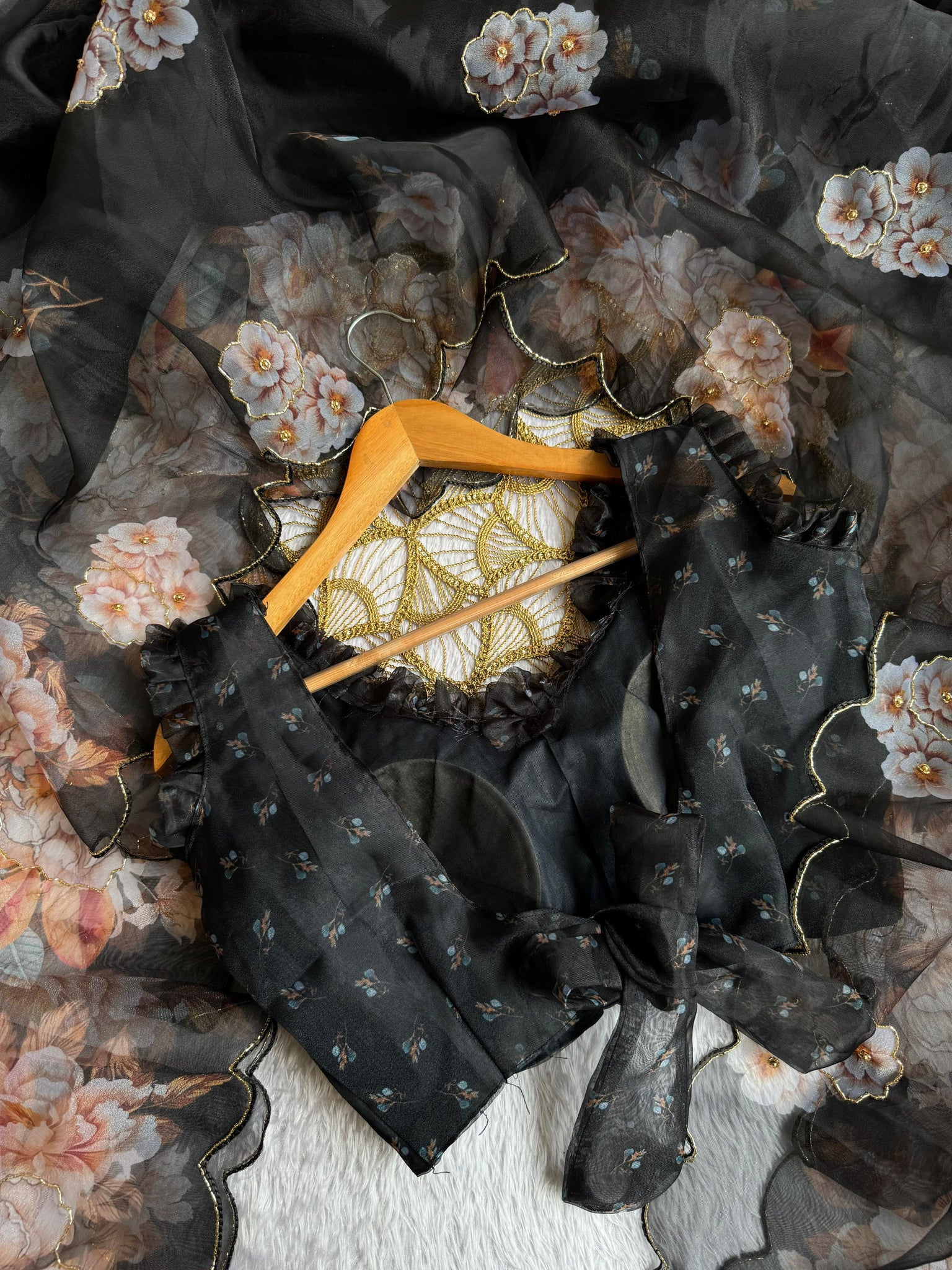 Saree Work : Digital Printed With Hand Work n Aarka Katdana Border