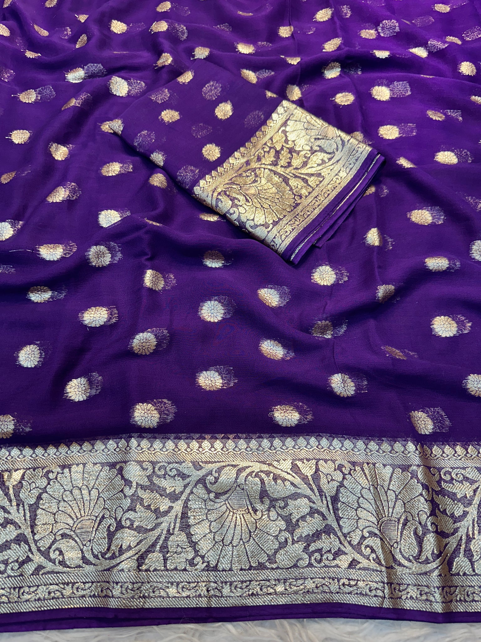 Elegance Party Wear Viscose Georgette Jacquard Zari Weaving Work Fancy Designer Saree