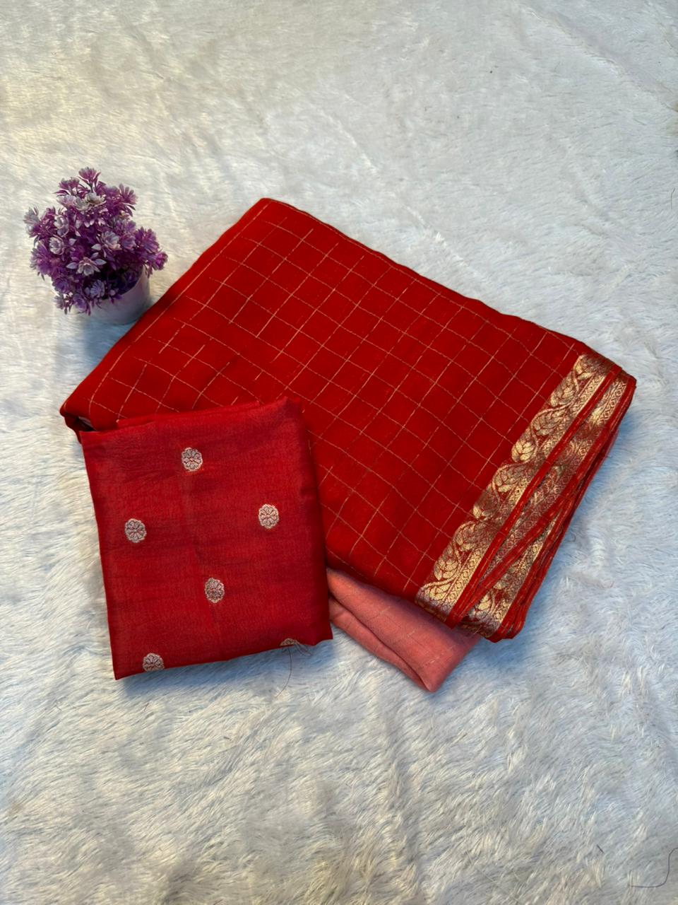 Saree Work : Checks Design n Rich Pallu Fancy Saree
