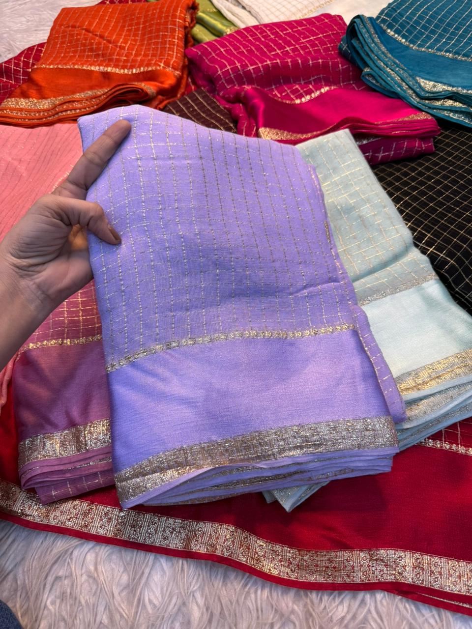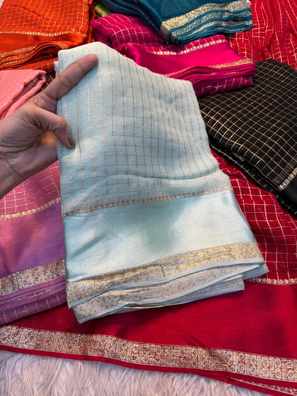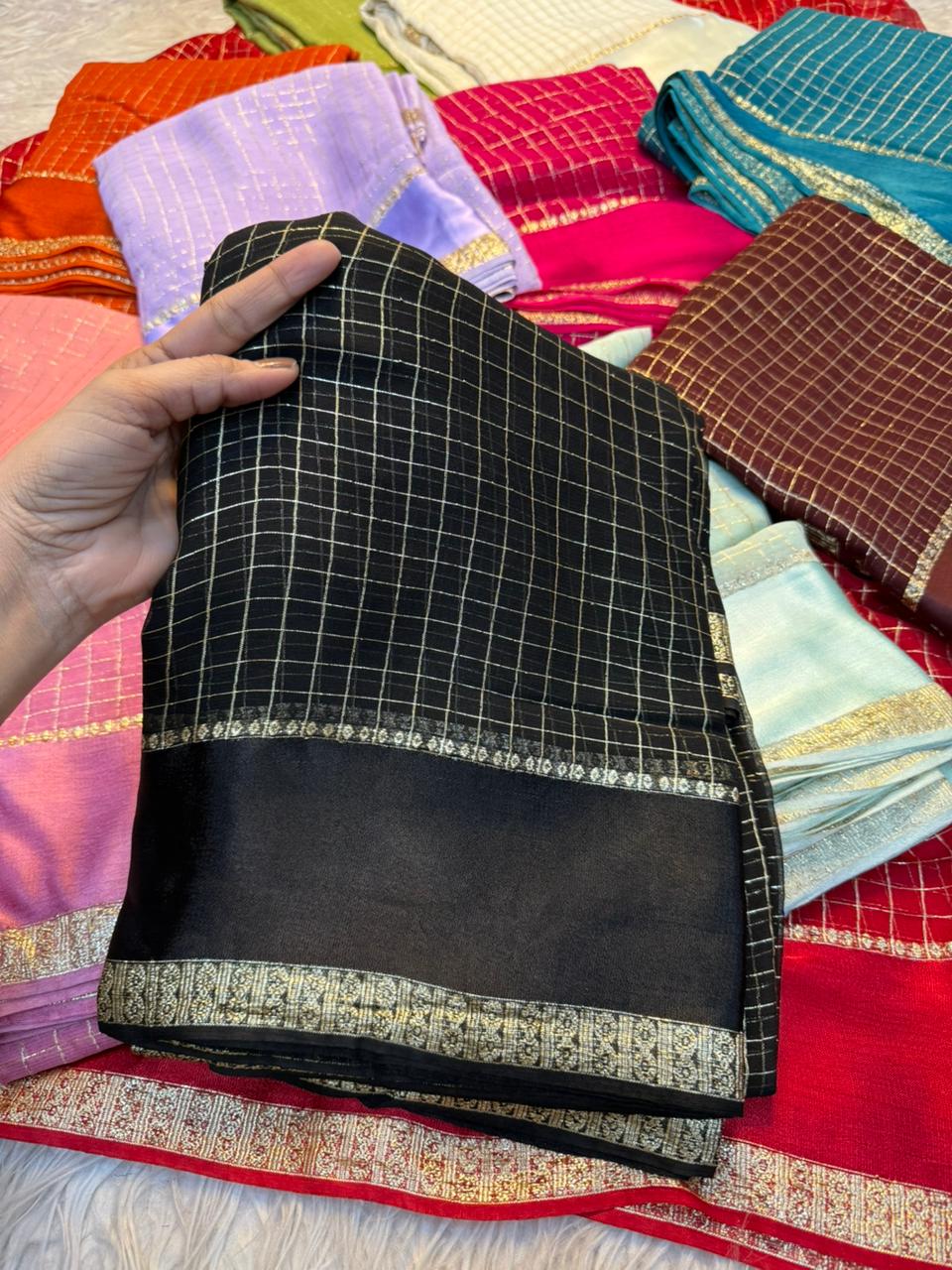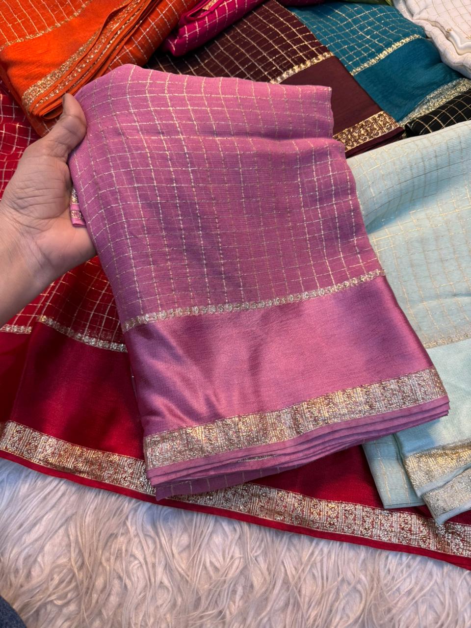 Saree Work : Satin Border Small Chex