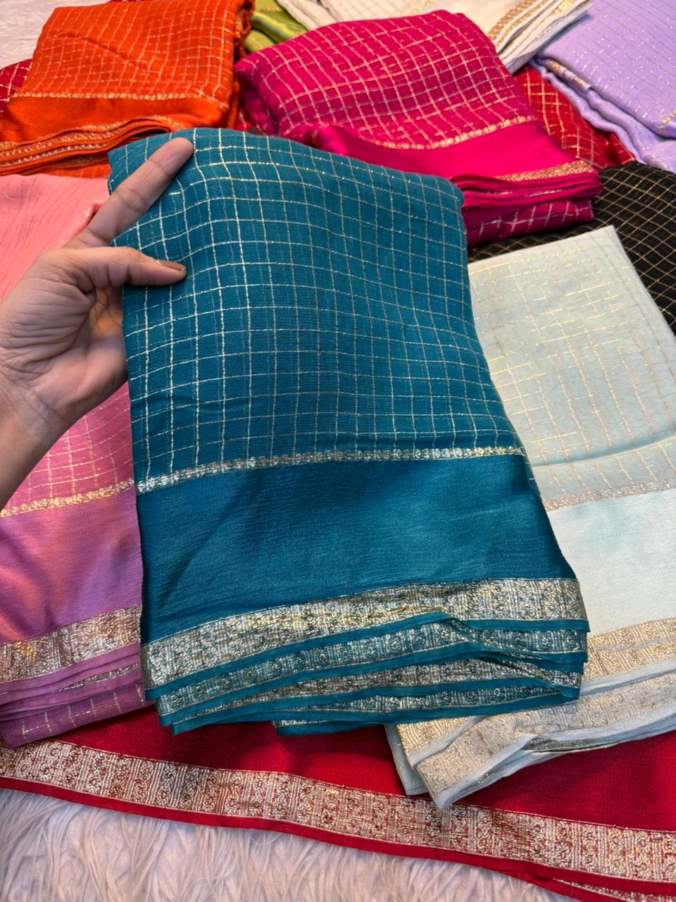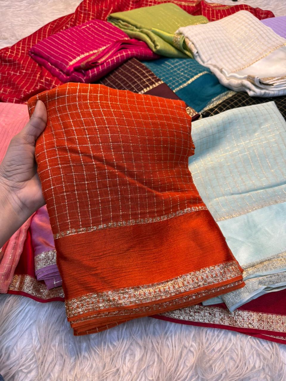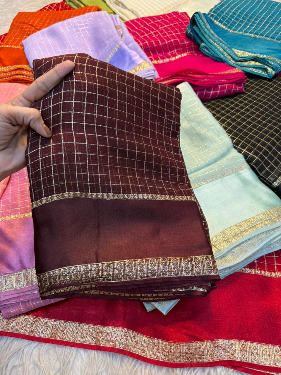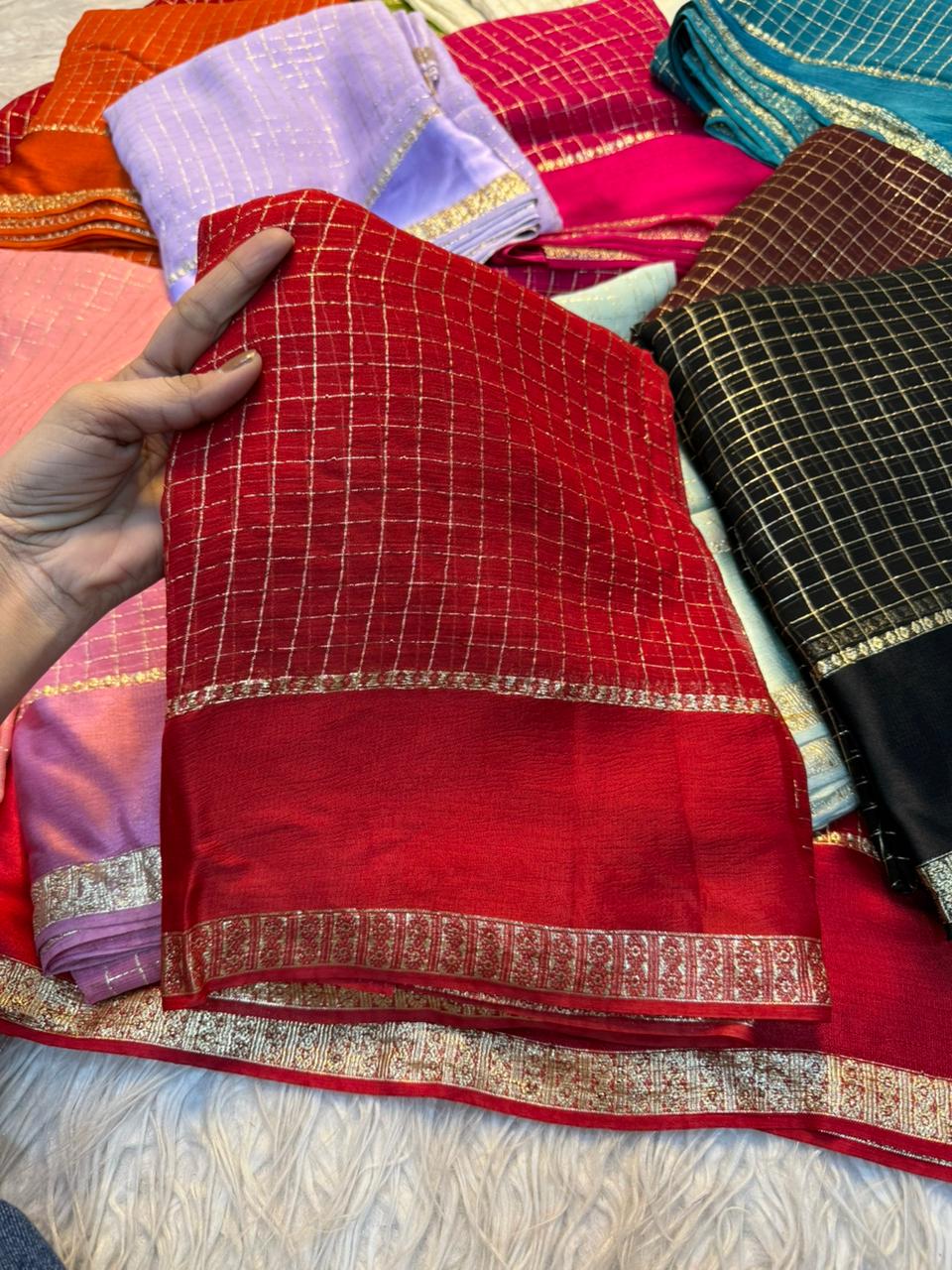 Saree Work : Satin Border Small Chex