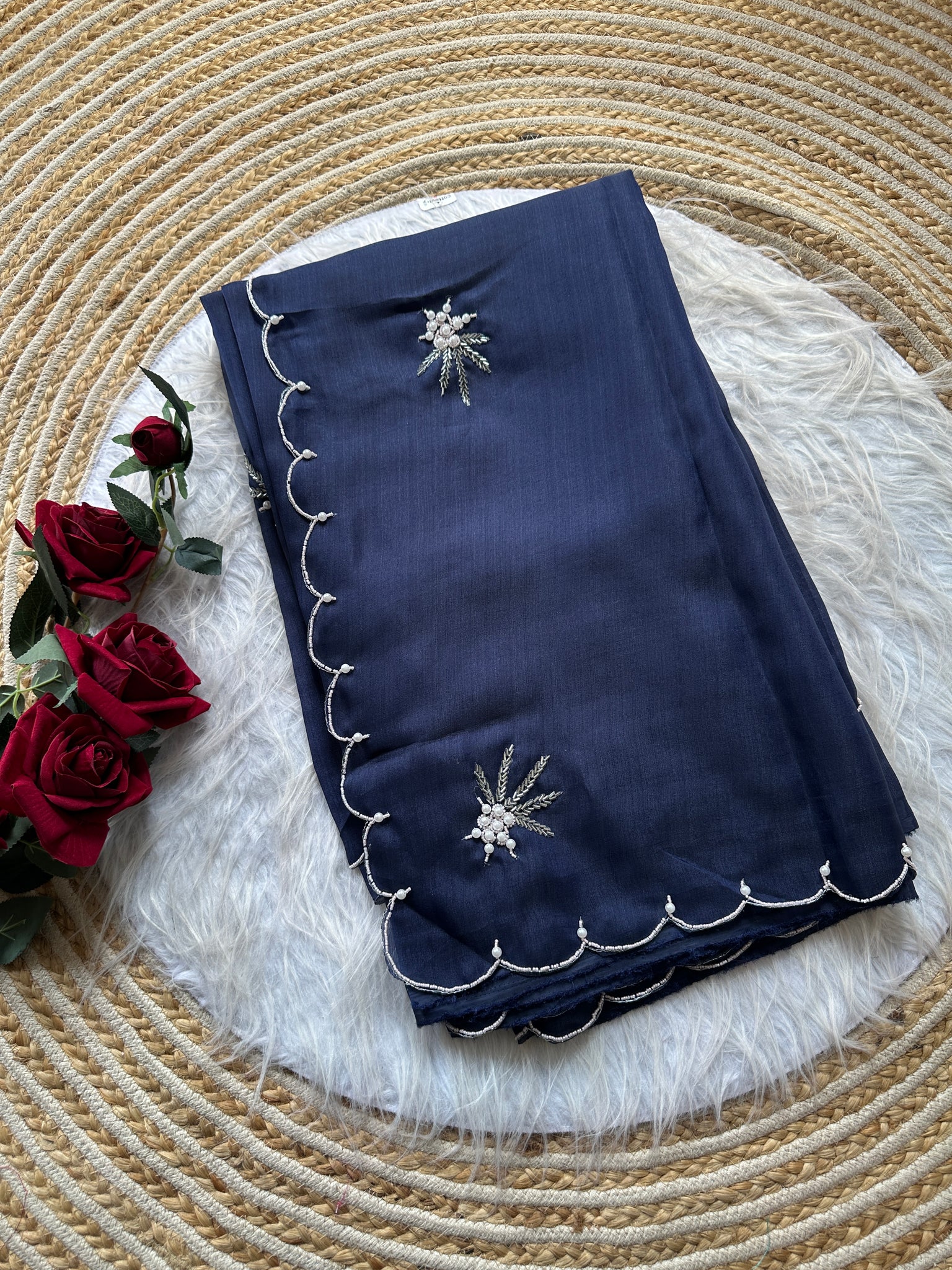 Saree Work : Heavy Lace Work With Pearls