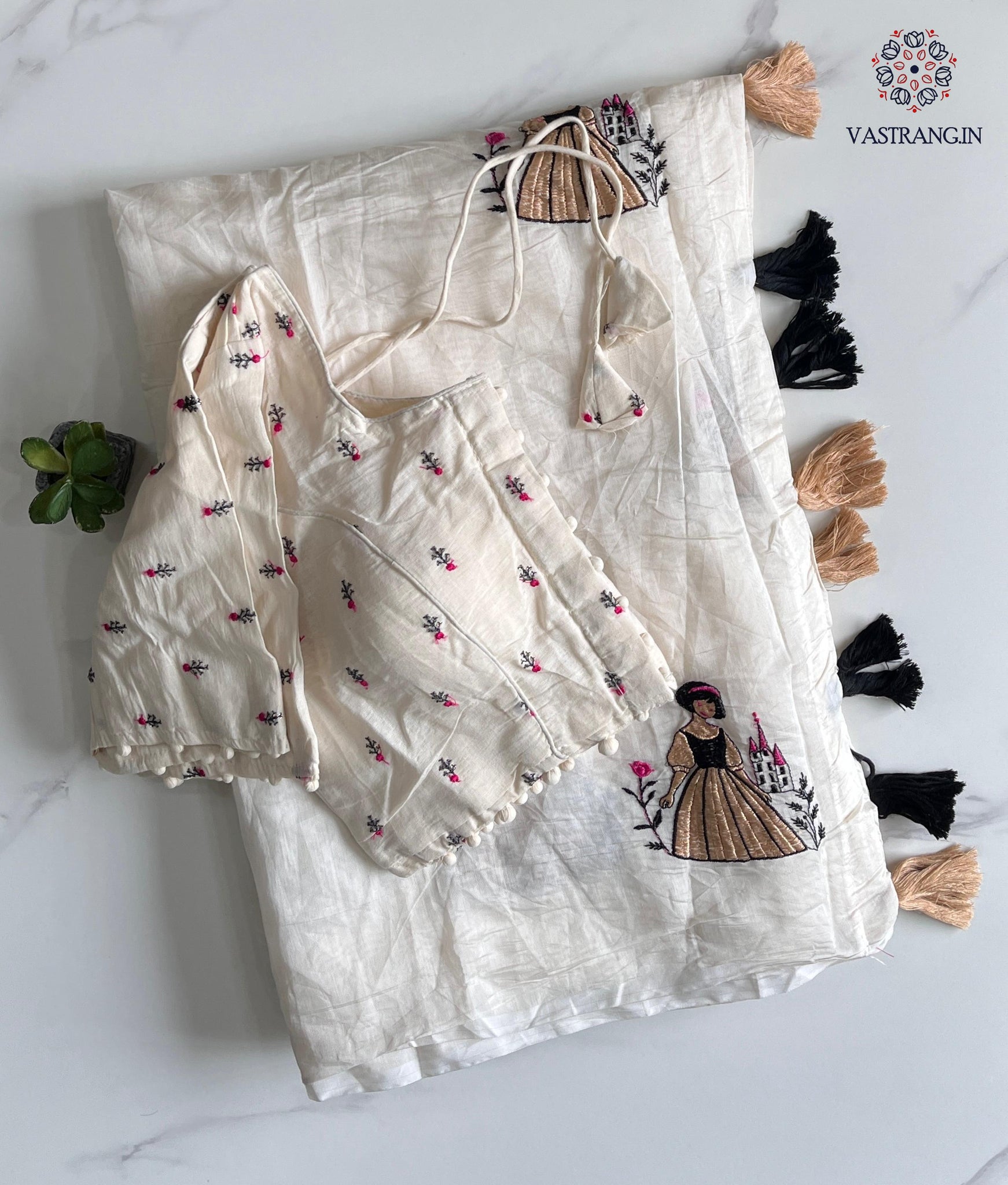 Gorgeous Party Wear Chanderi Cotton Embroidery n Tussels Work Fancy Designer Festive Wear Saree With Stitched Blouse