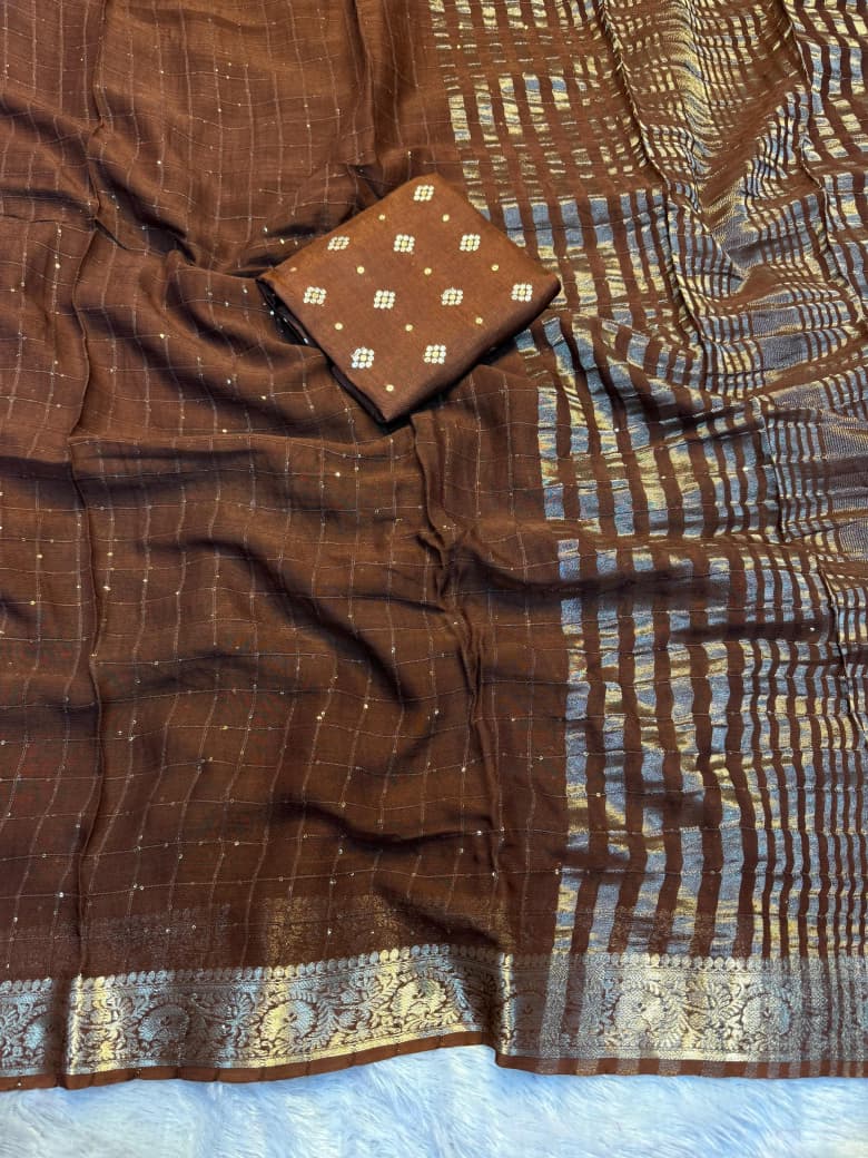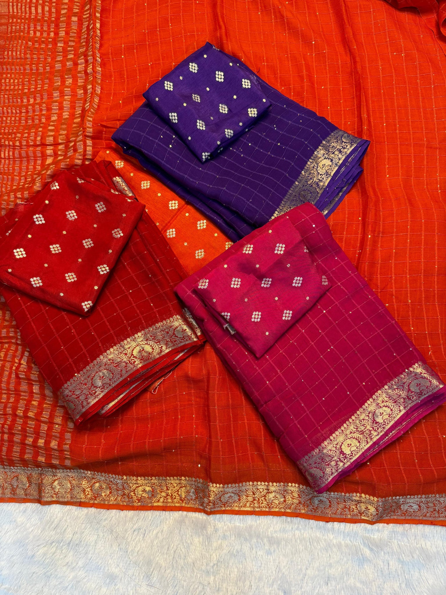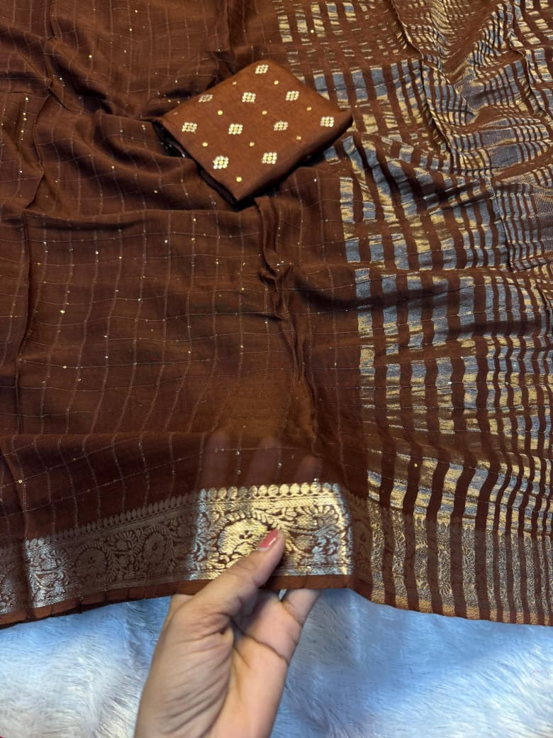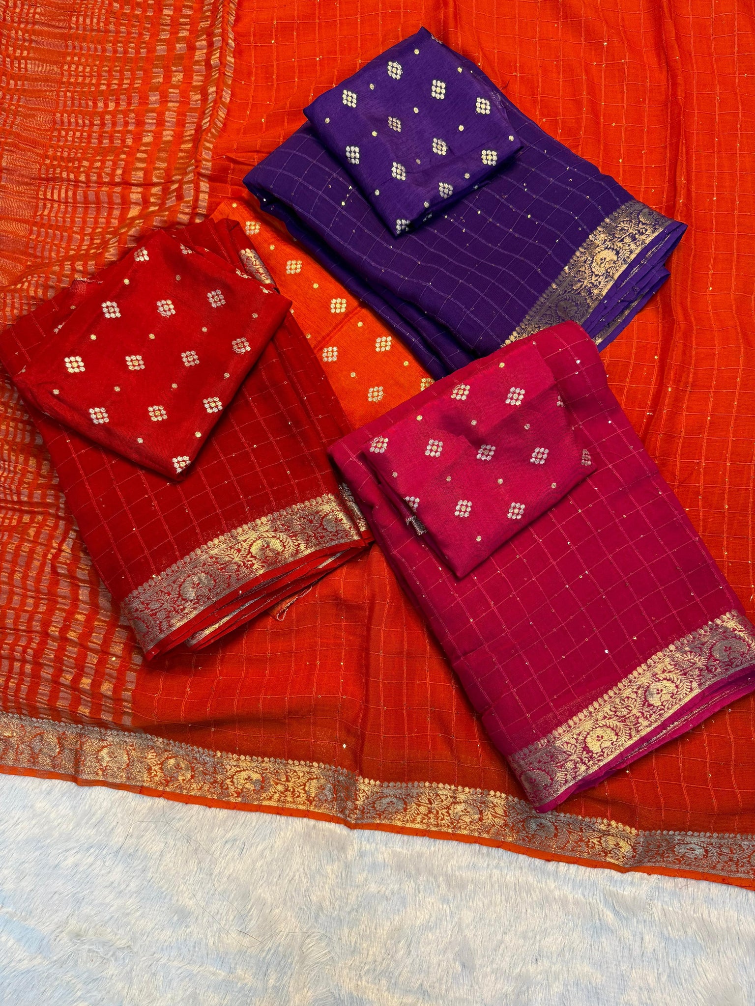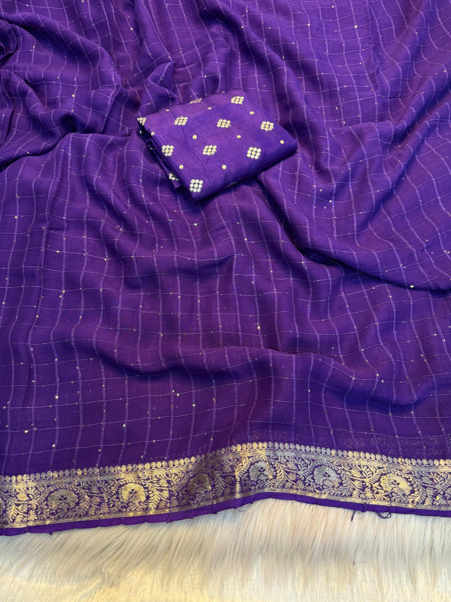 Saree Work : Jacquard Weaving Work Checks Design Rich Pallu