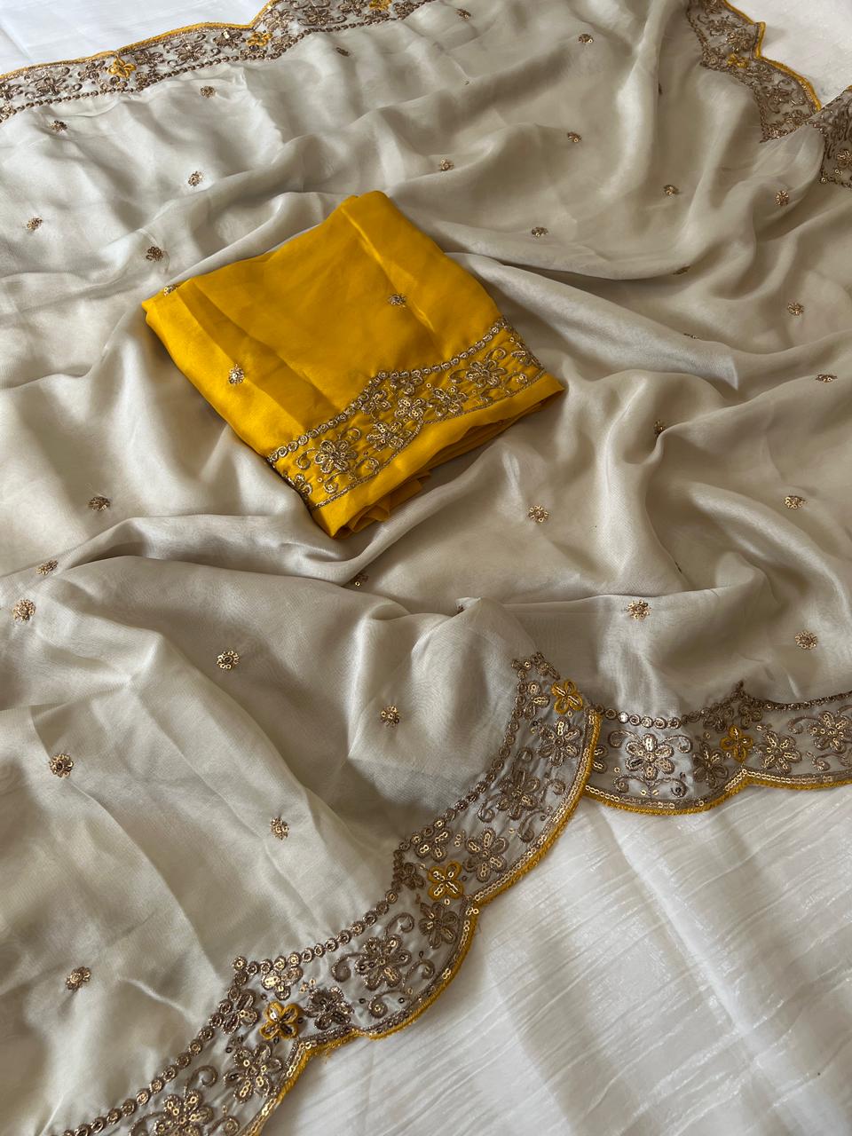 Groovy Party Wear Rangoli Silk Embroidery Thread Work Designer Saree With Contrast Blouse Piece