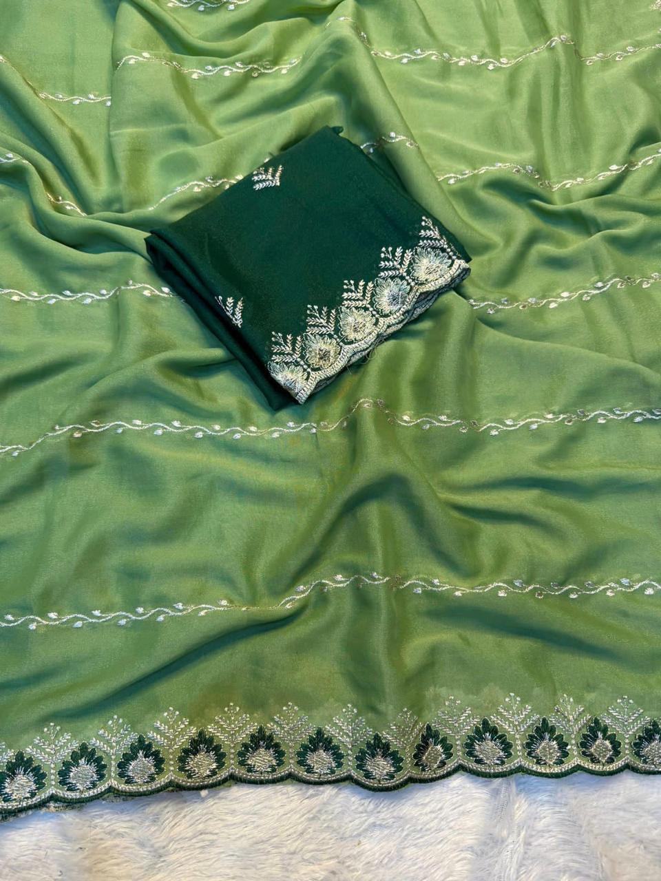 Saree Work : Embroidary Sequence Work Lehriya Design