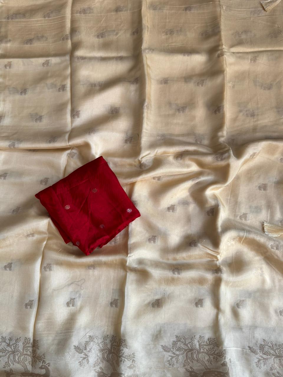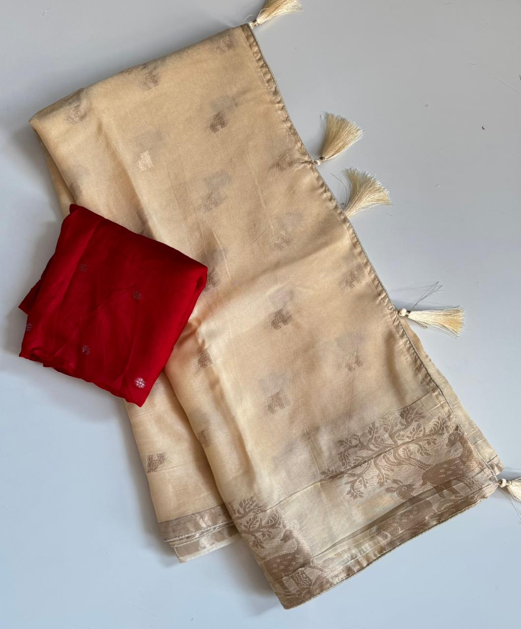 Saree Work : Golden Zari Butti n Border With Tussel Work Pallu