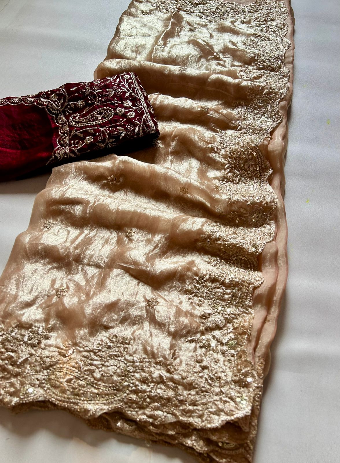 Saree Work : Embroidery Thread n Arco Cut Work Border