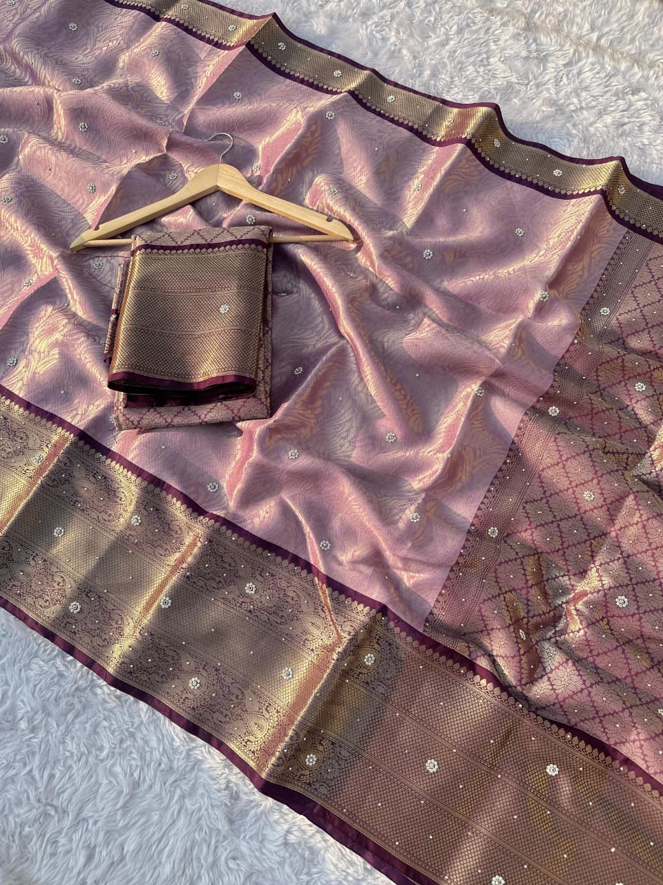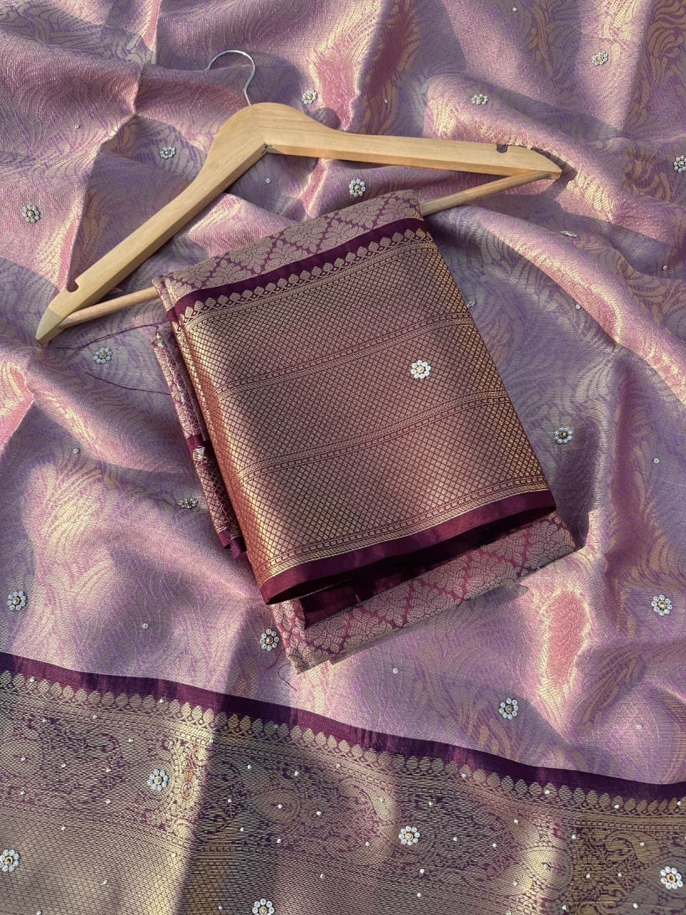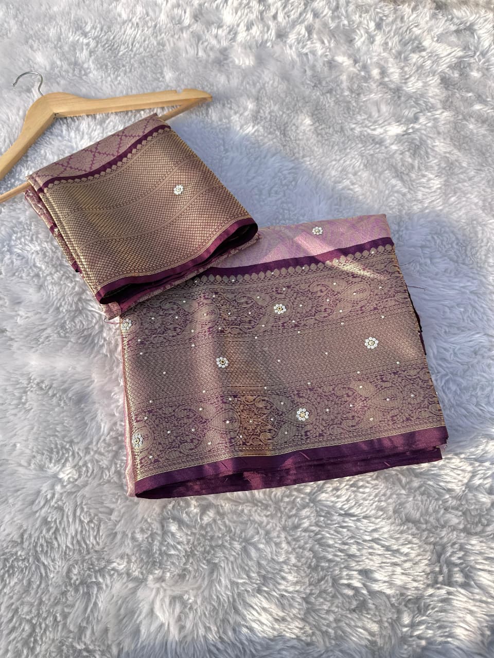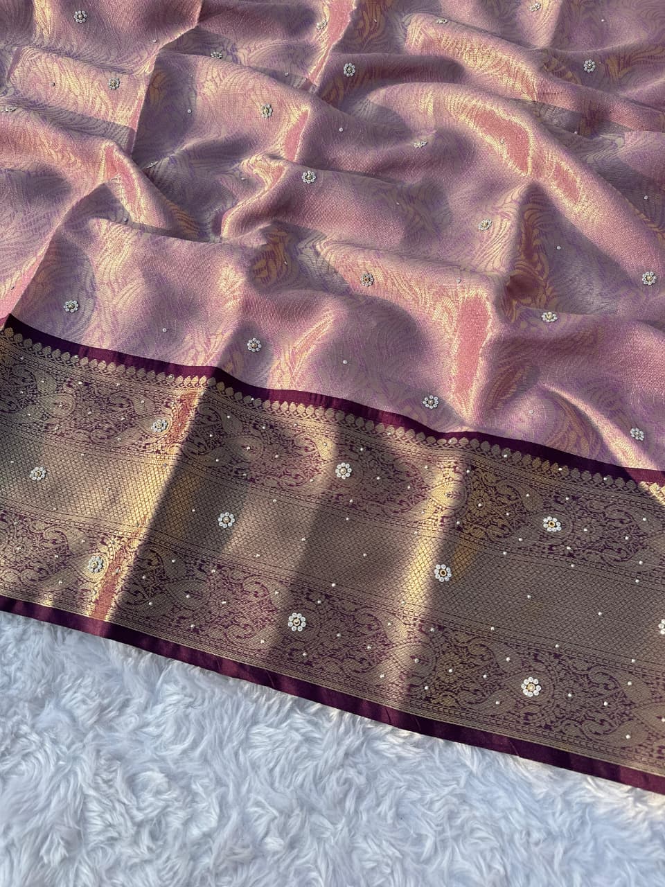 Saree Work : Handstone Work Stunning Pallu Jacquard Border
