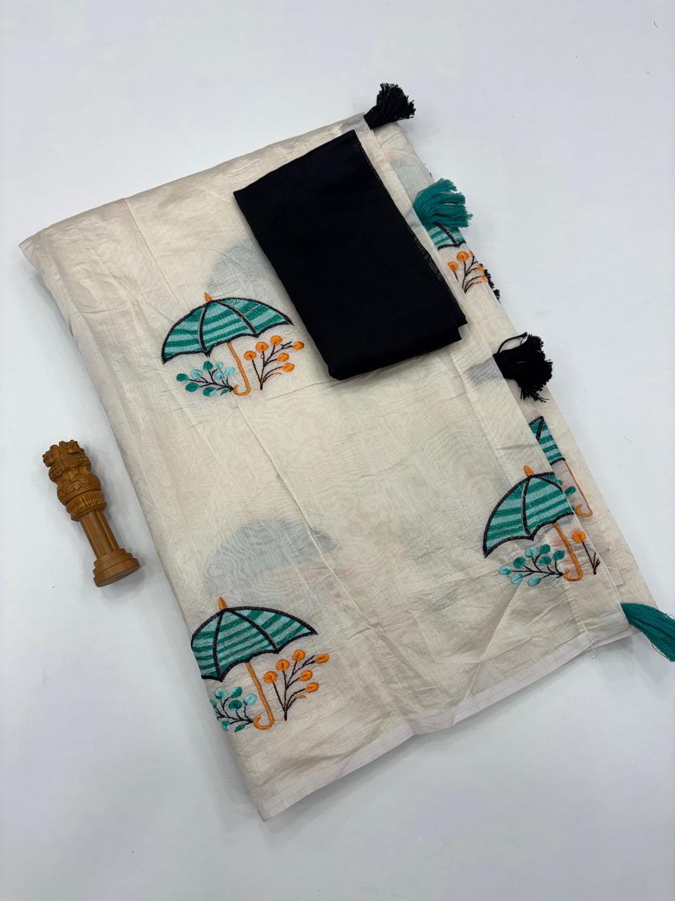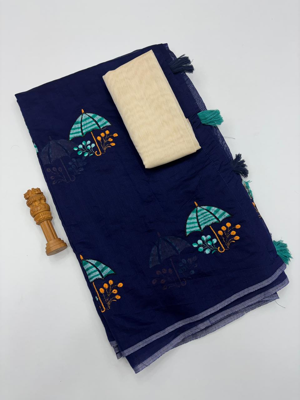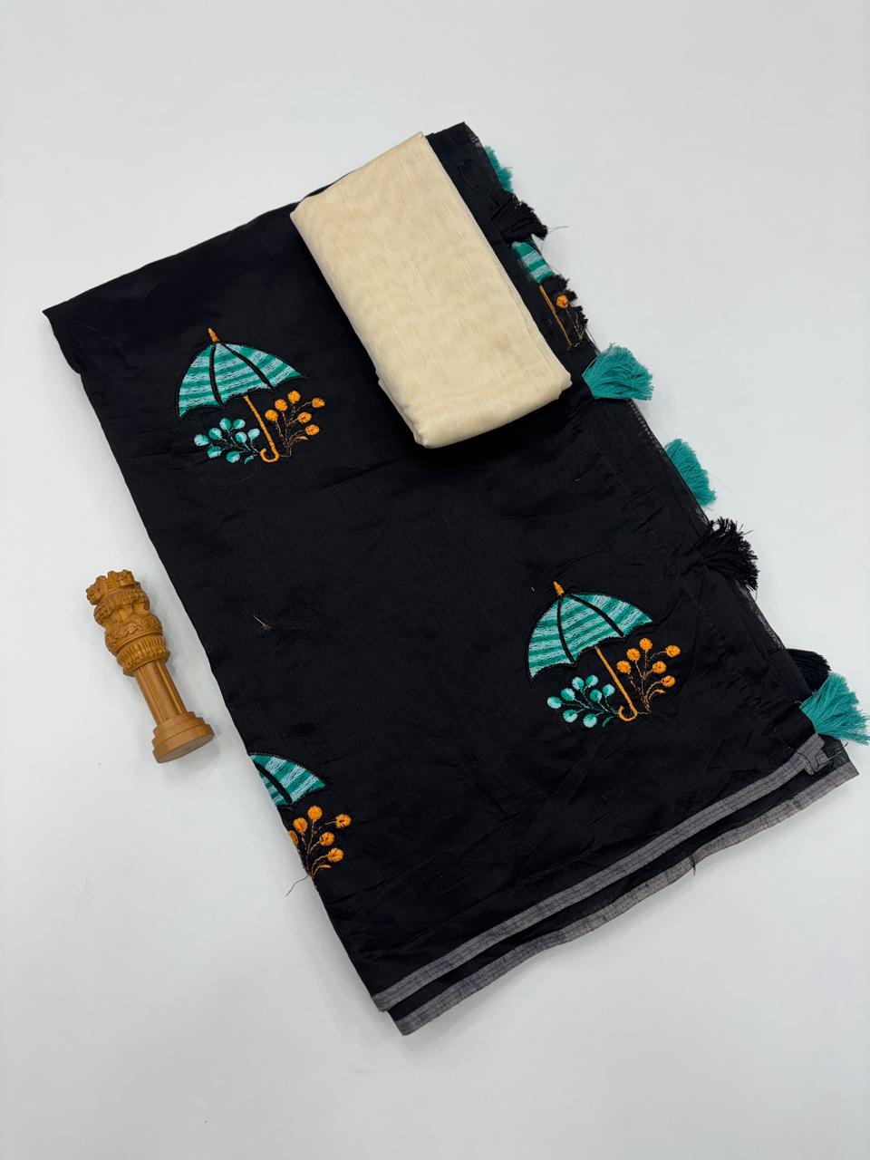 Luminous Party Wear Pure Soft Chanderi Silk Embroidery n Tussels Work Fancy Designer Saree With Unstitched Blouse