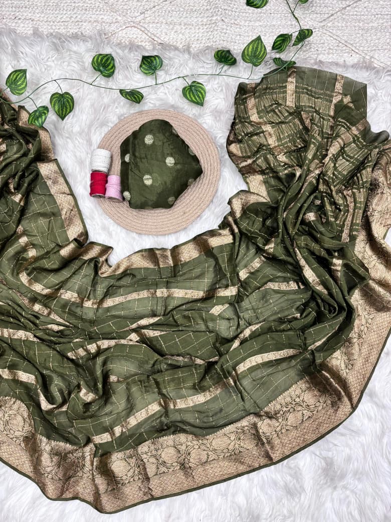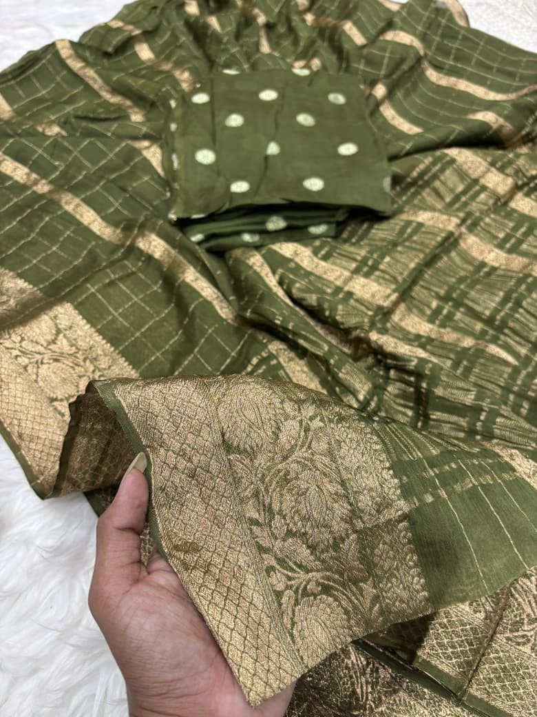 Saree Work : Zari Checks Weaving Border With Rich Pallu