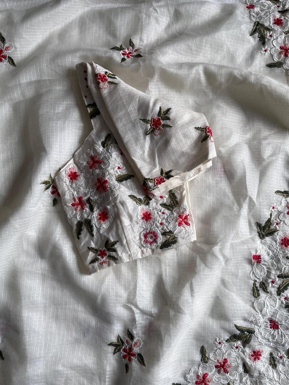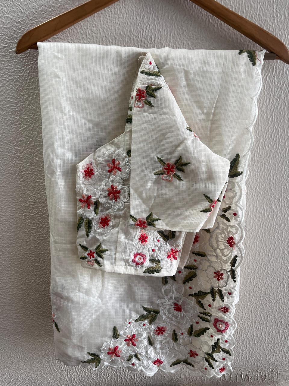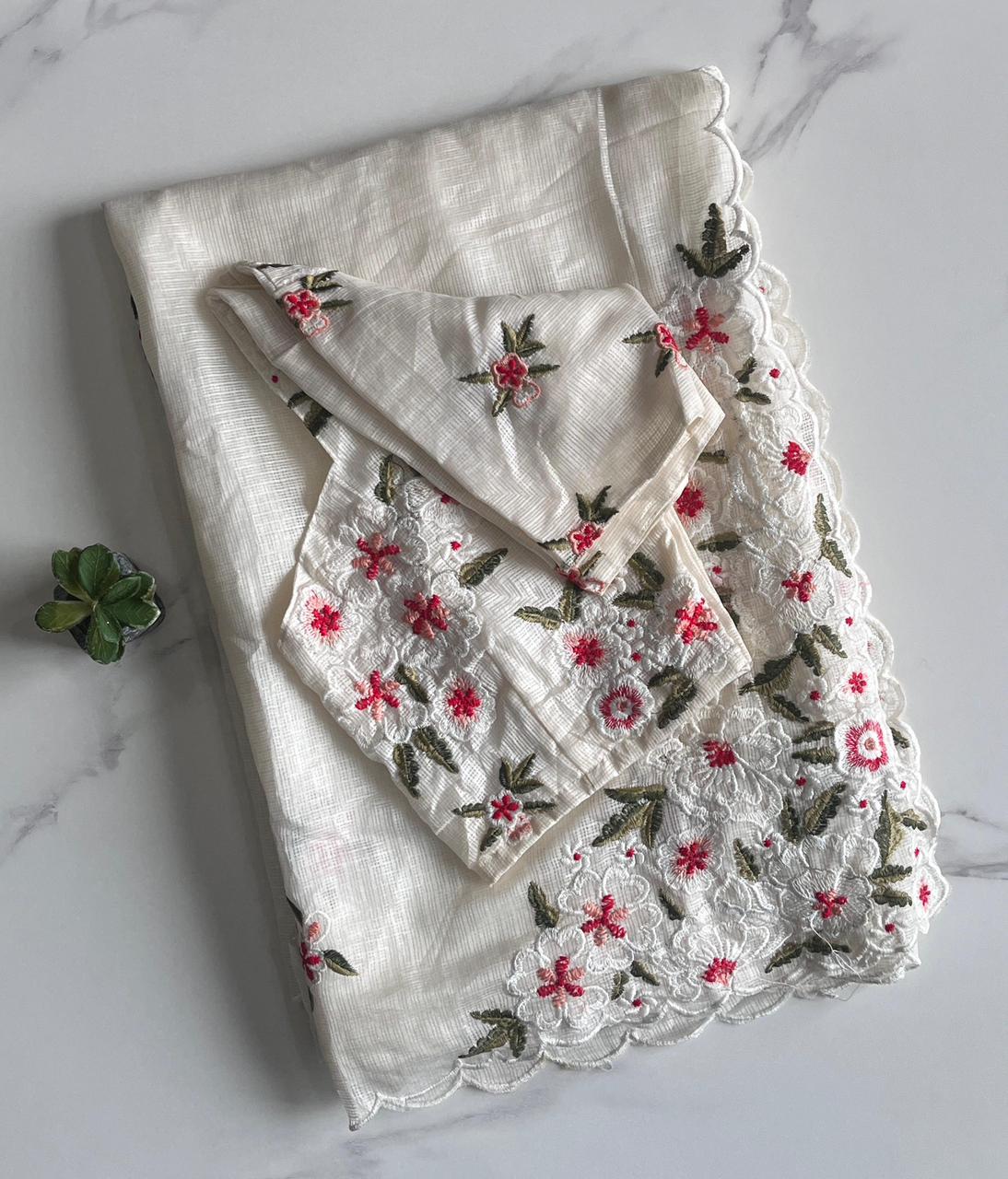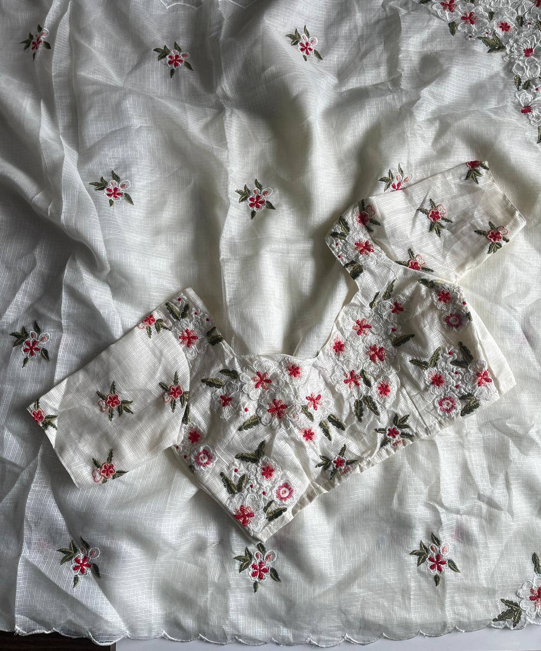 Saree Work : Embroidery Flower Butties n Arco Cut Work Border