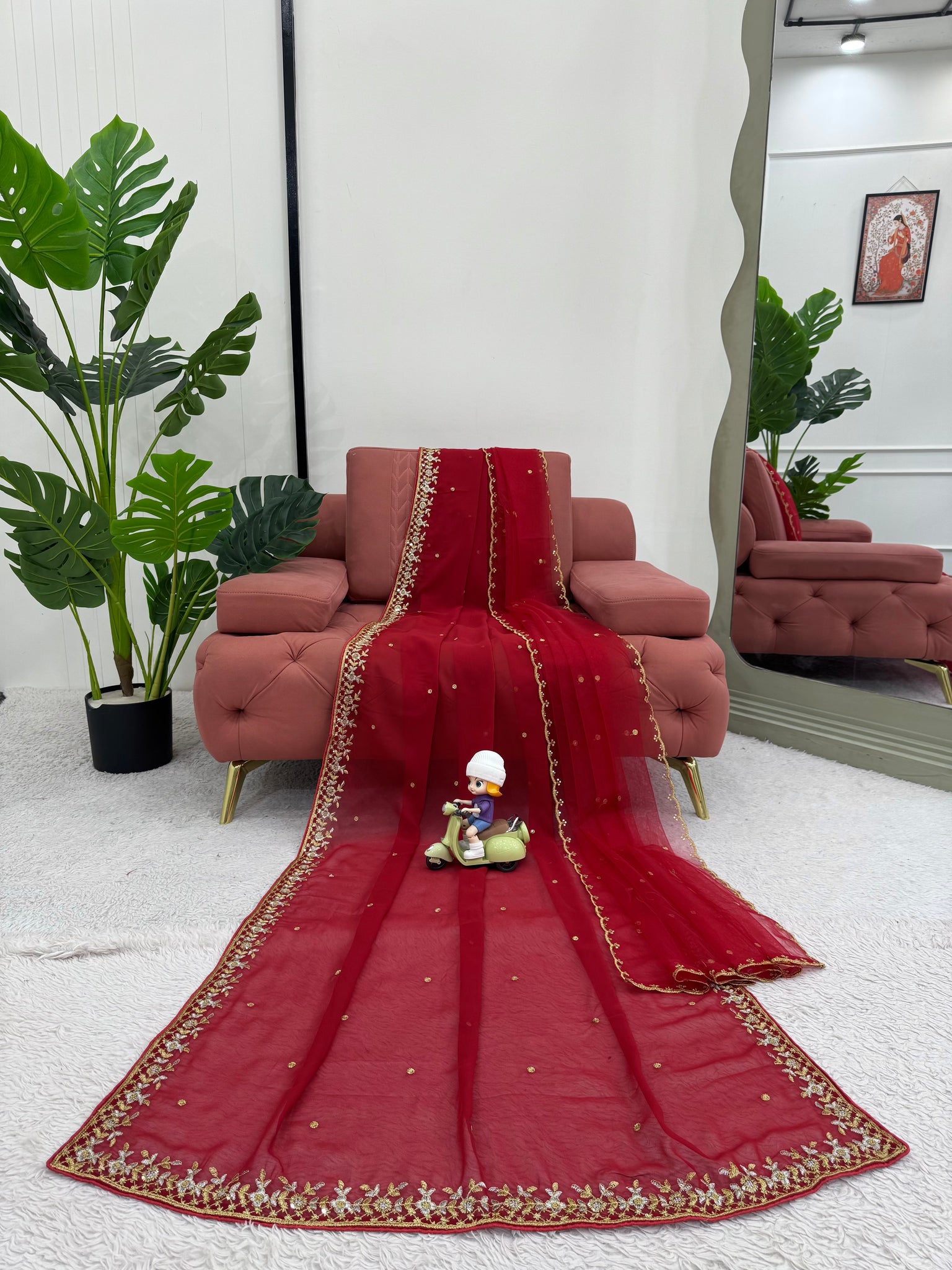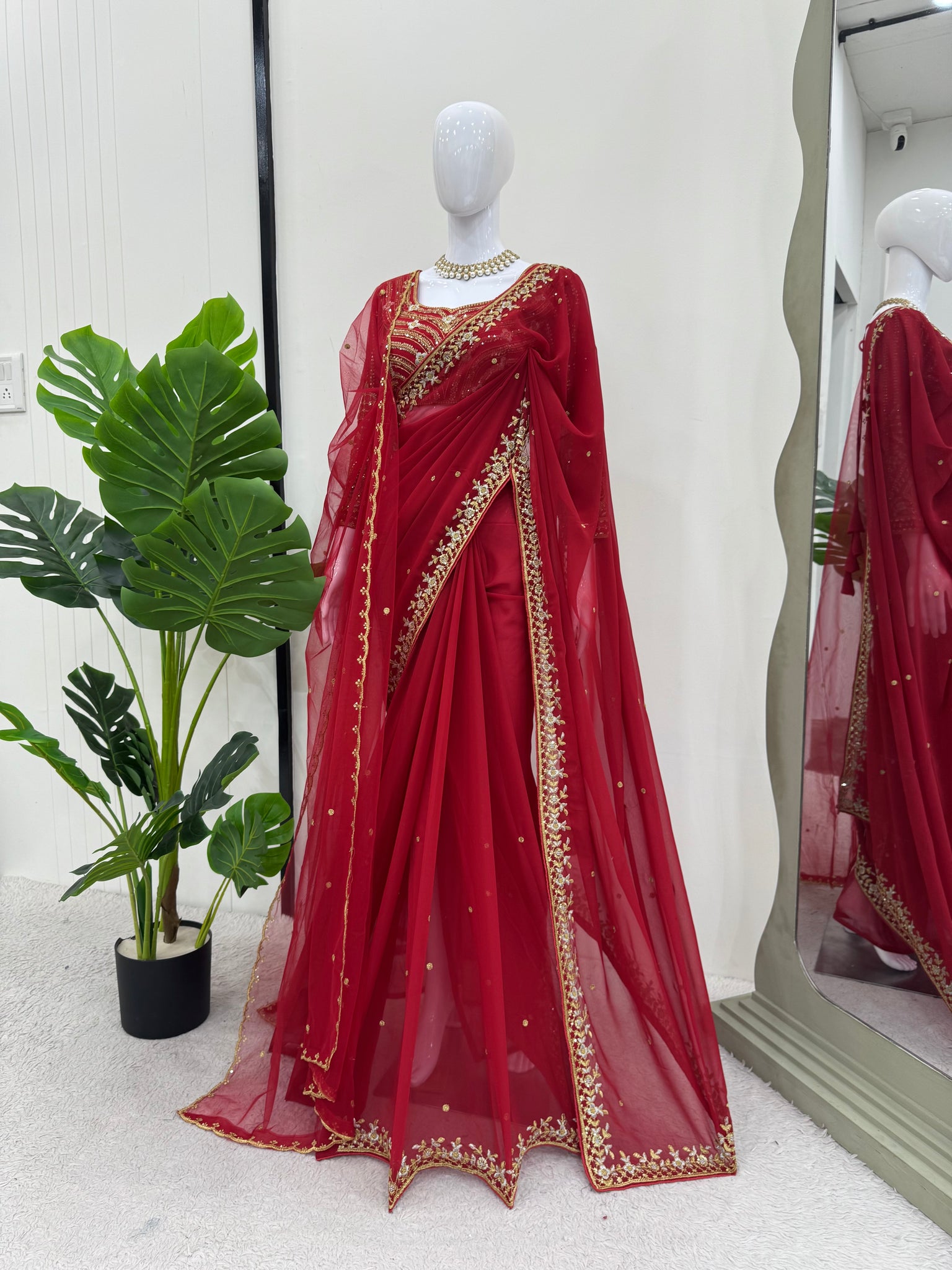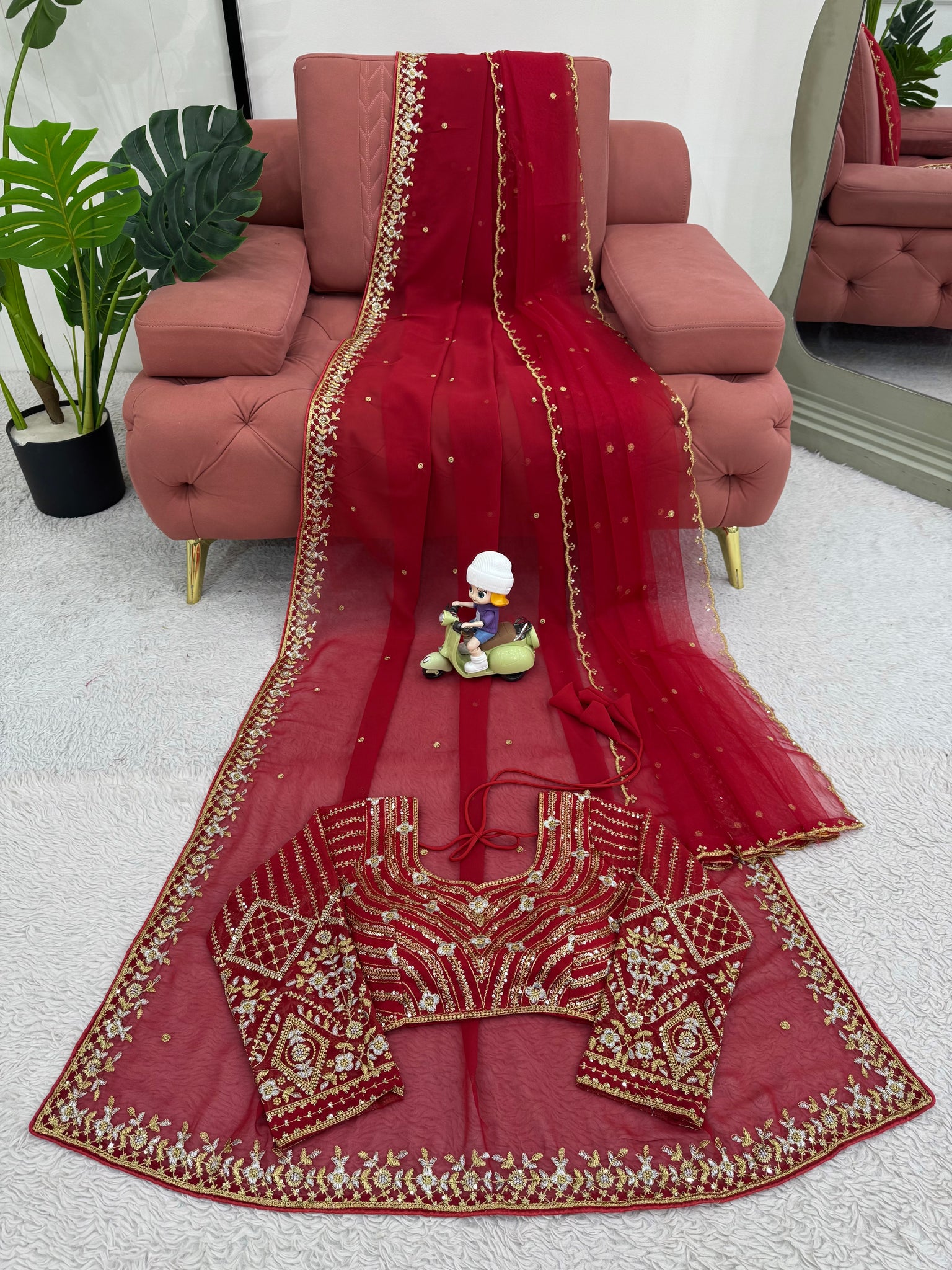 Looking some one for this same colour beautiful Designer Saree on Faux Georgette Febric with Thred & Sequnce wok and Blouse on also Faux Georgette Febric With Thred & Sequnce work and Dupatta on Soft Net With Thred with Sequnce work.