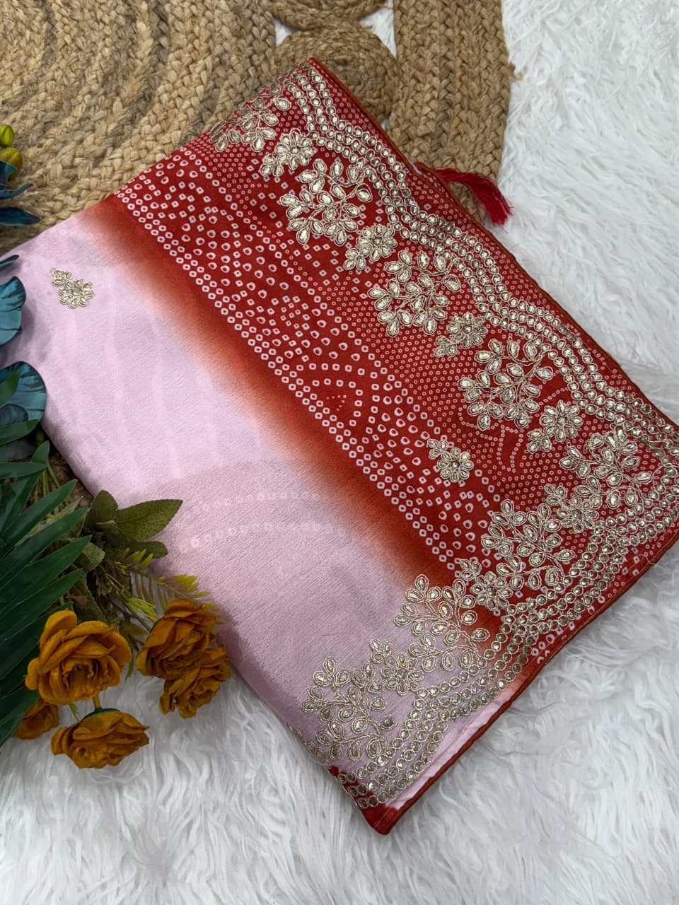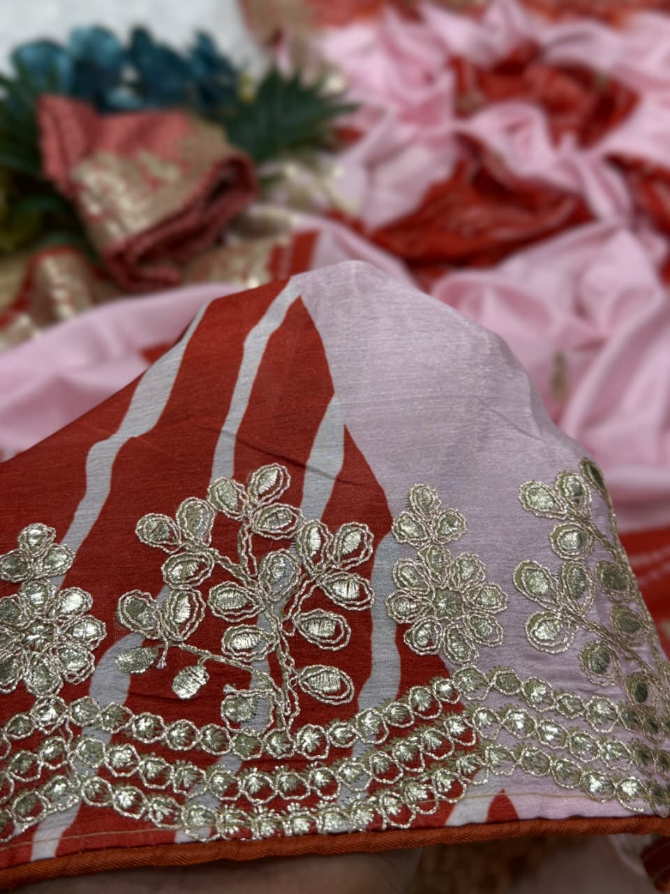 Saree Work : Digital Print With Foil Embroidery Work