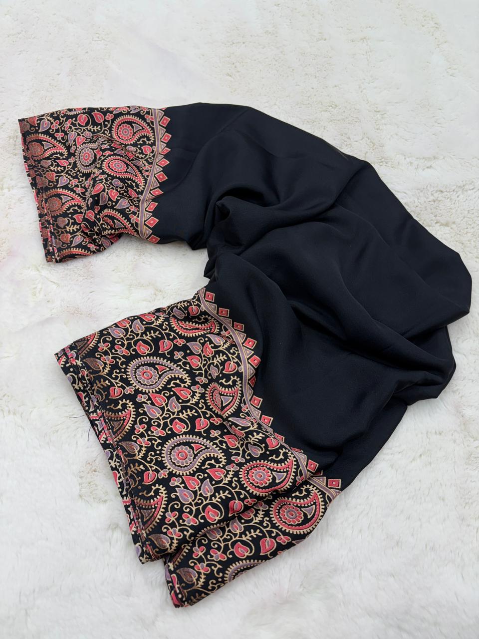 Saree Work : Ajrak Printed With Rich Pallu n Tussles Work