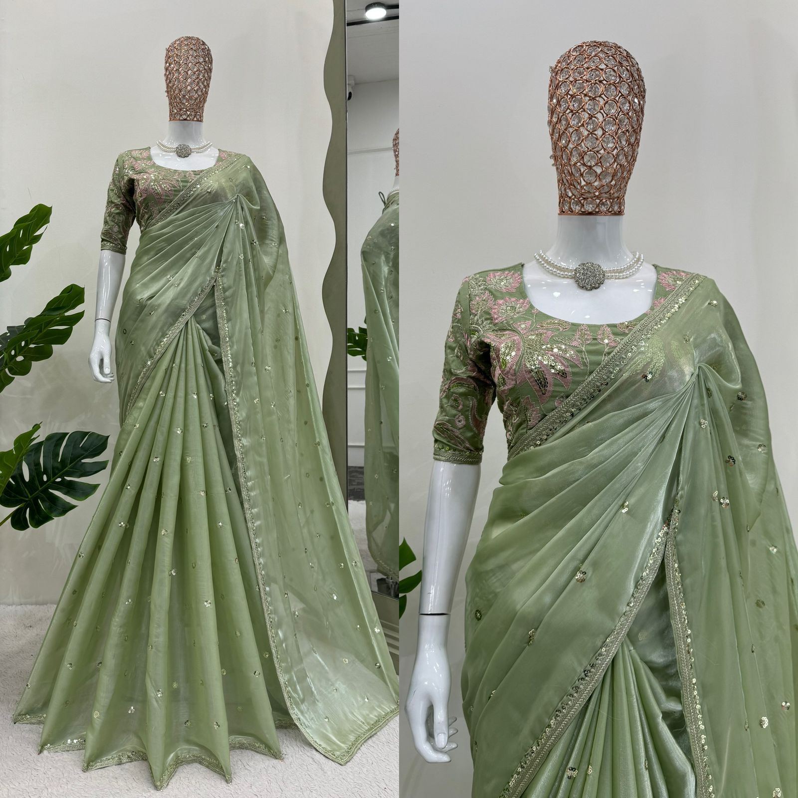 Looking some one for this same colour beautiful Designer Saree on Silk Febric with Thred n Sequnce work and Blouse on Mono Benglori Febric With Thred n Sequnce work.