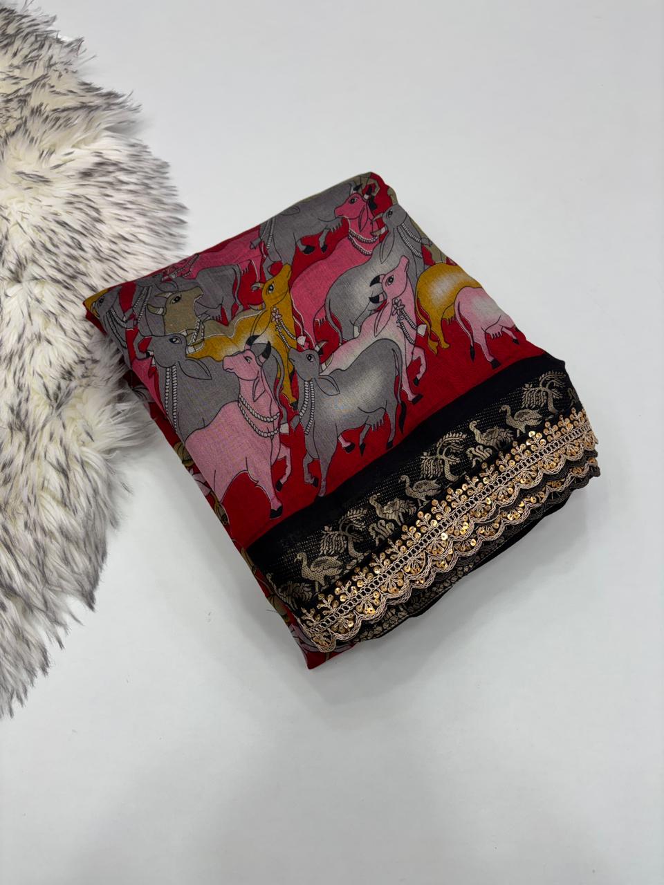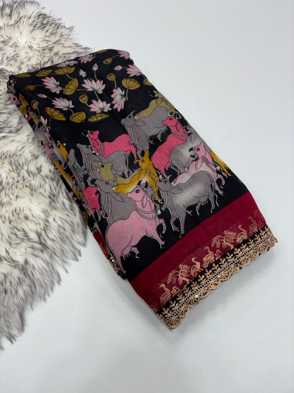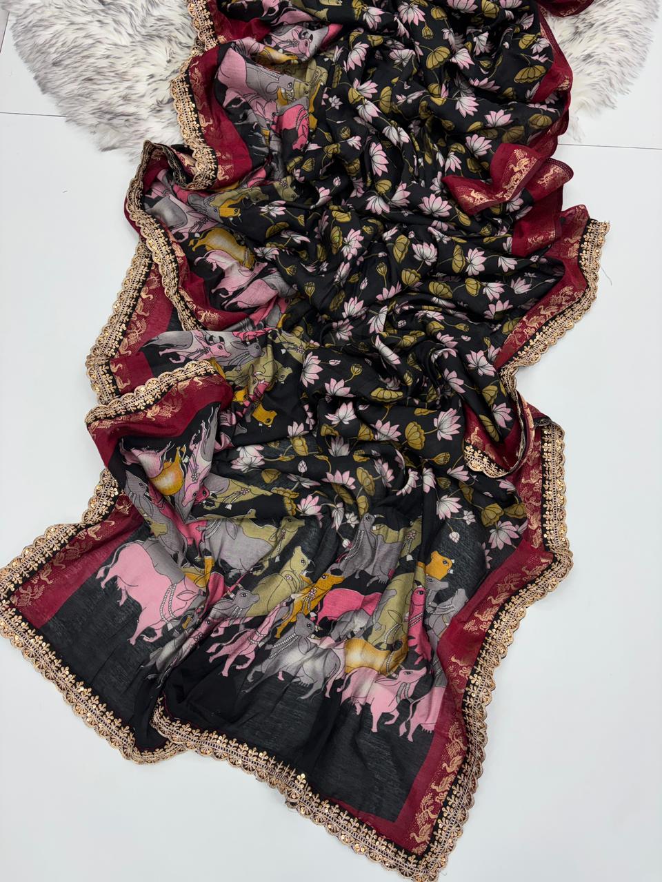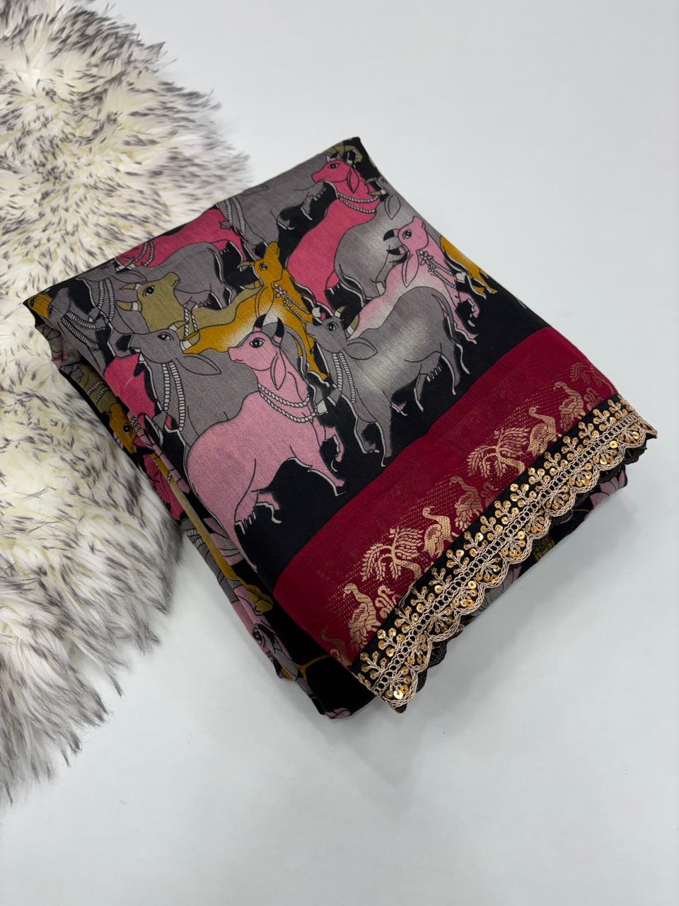 Saree Work : Print Weaving n Sequence Lace Work