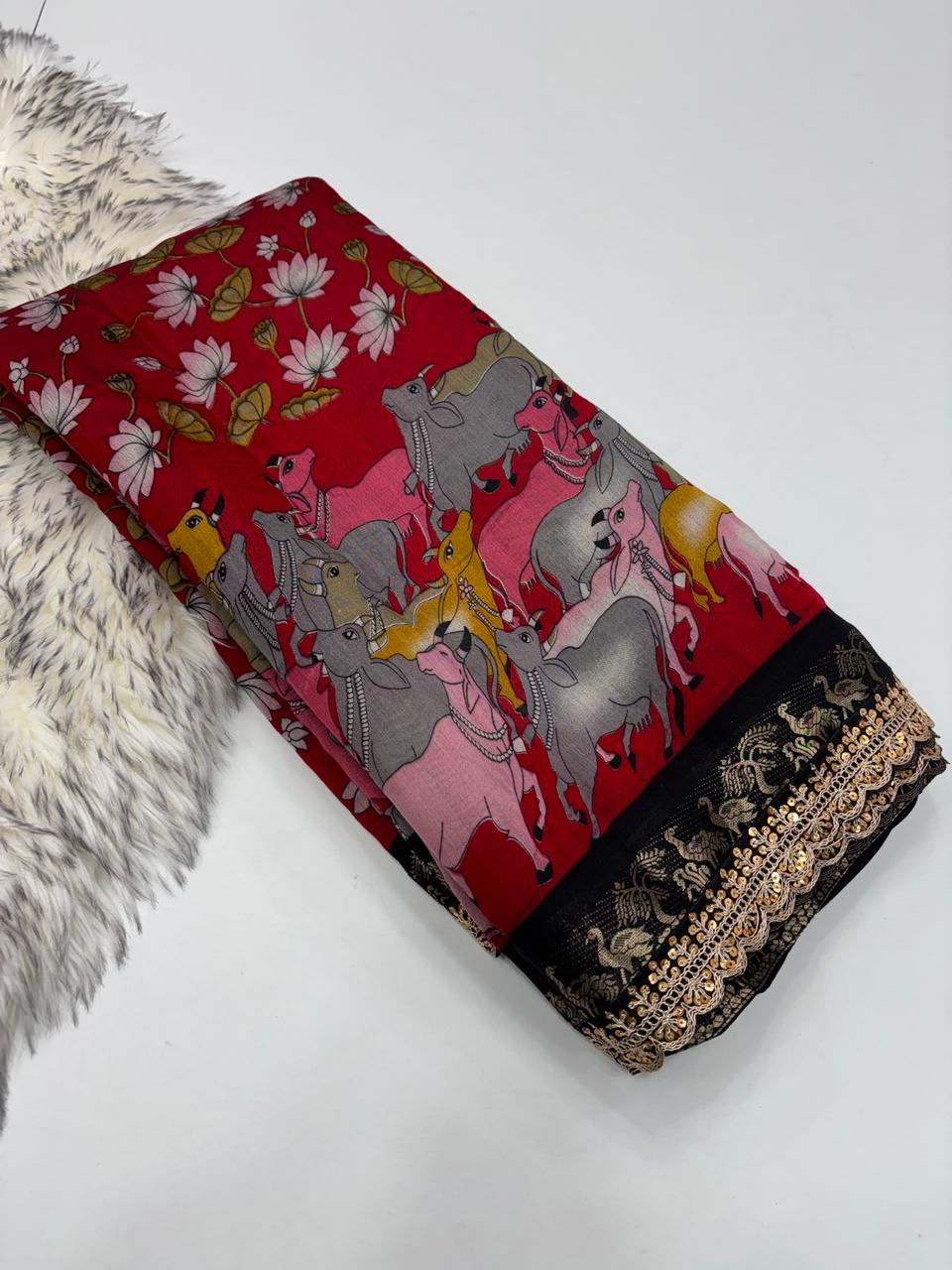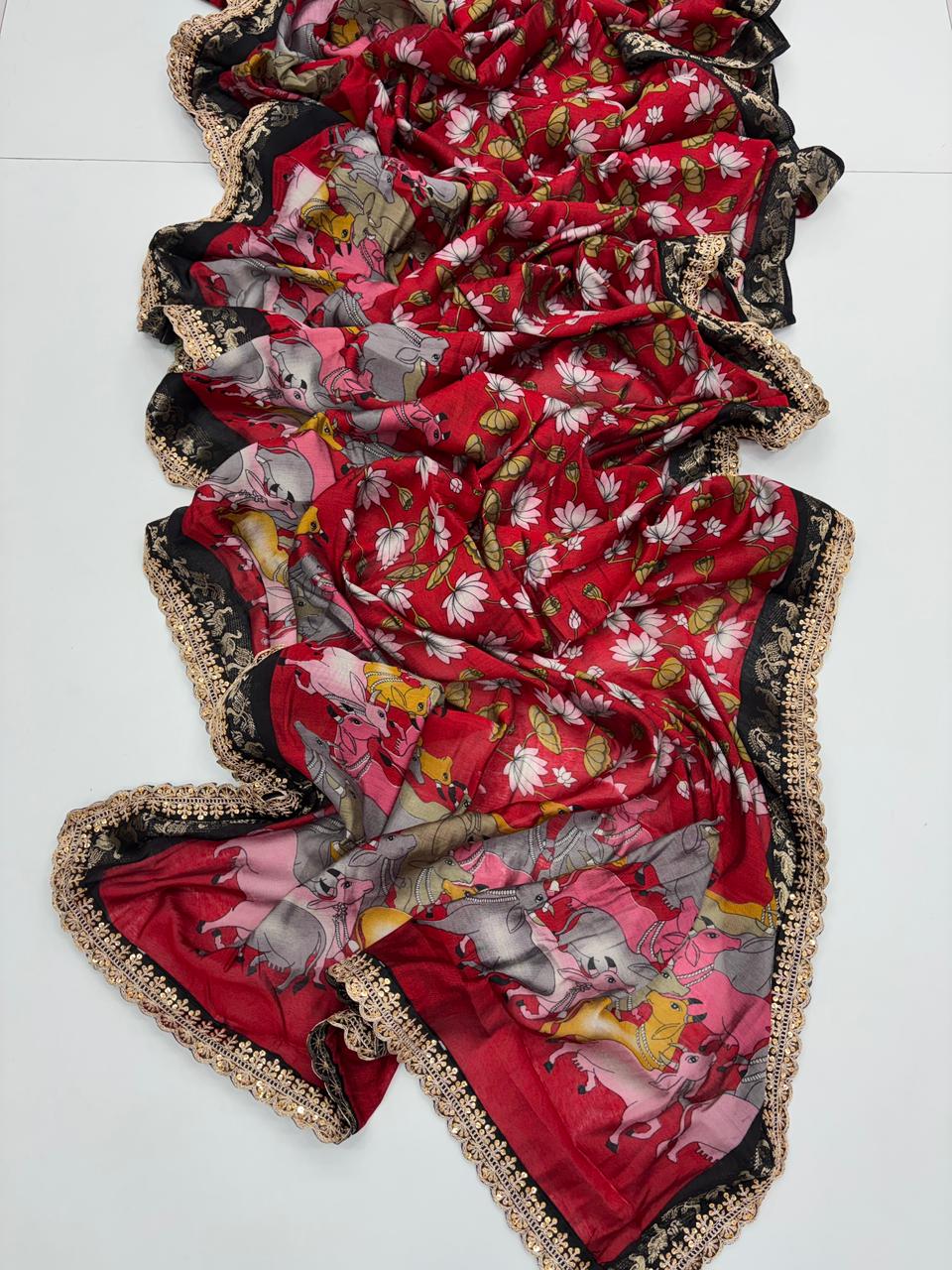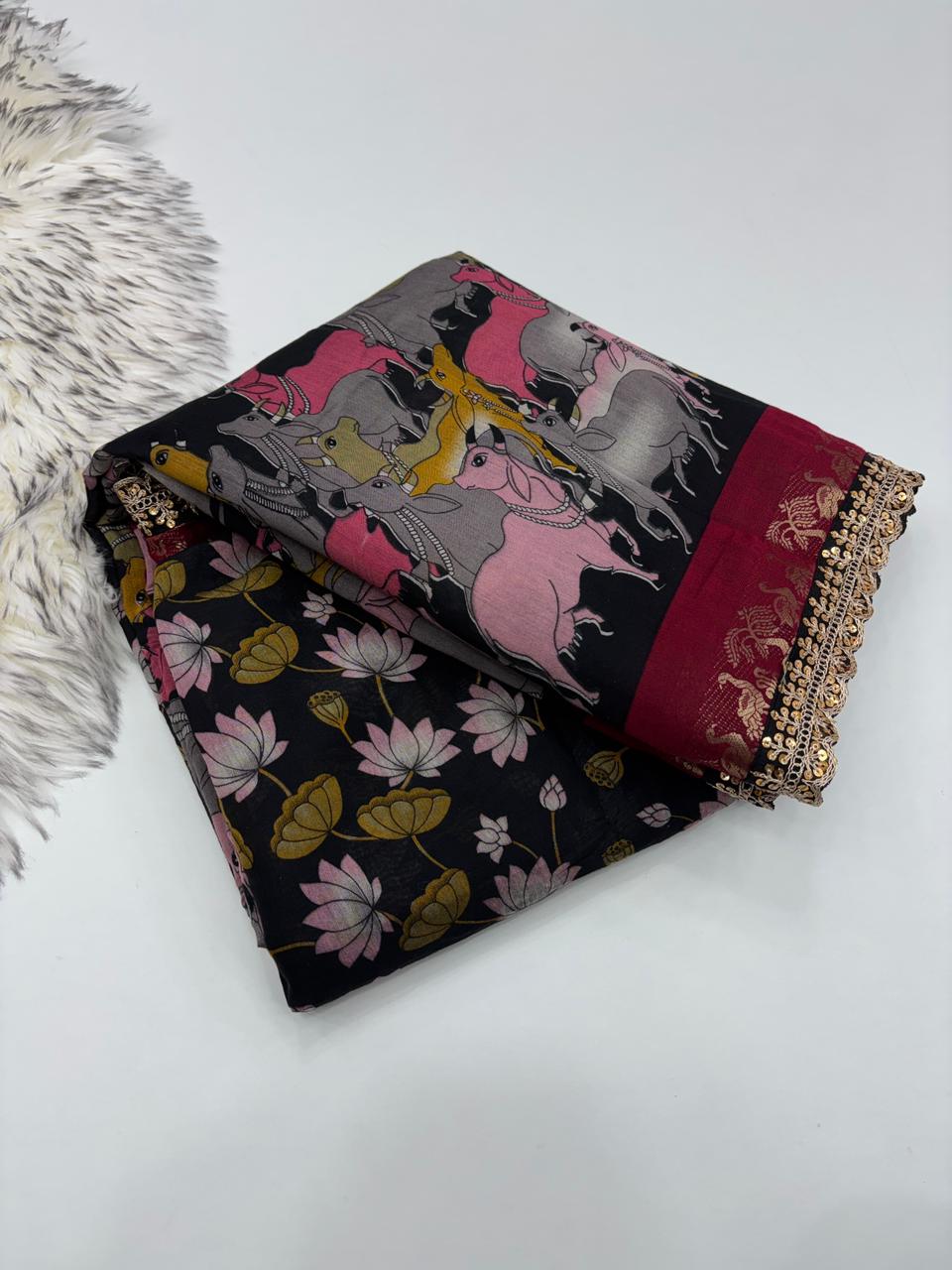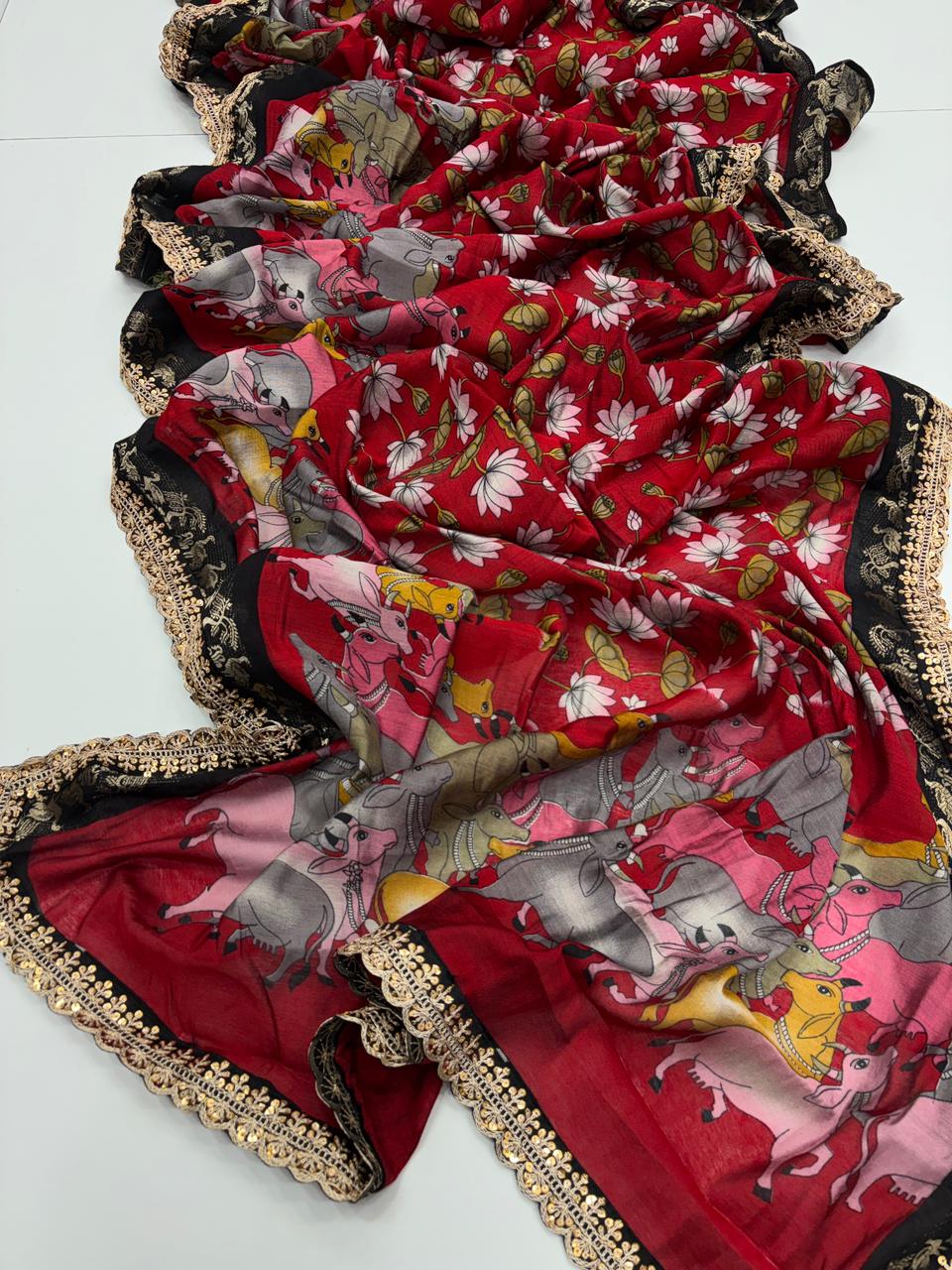 Saree Work : Print Weaving n Sequence Lace Work
