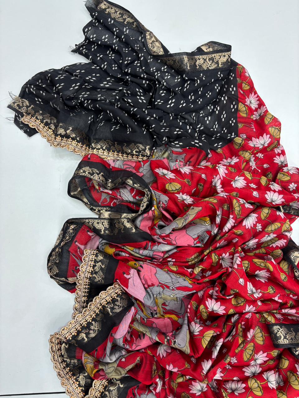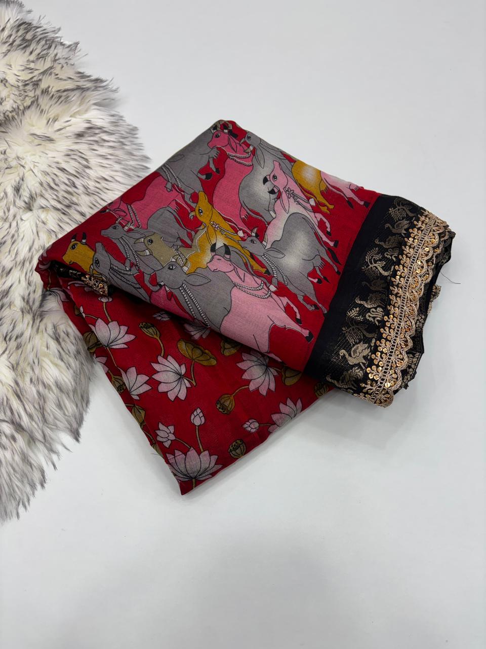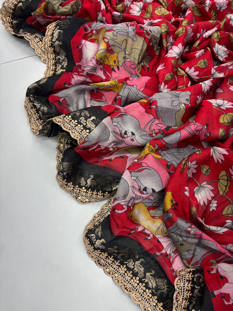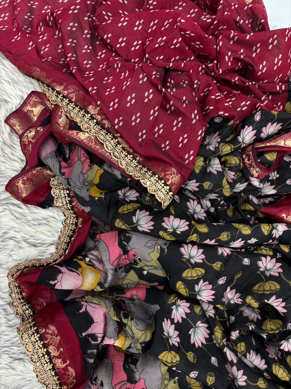 Saree Work : Print Weaving n Sequence Lace Work