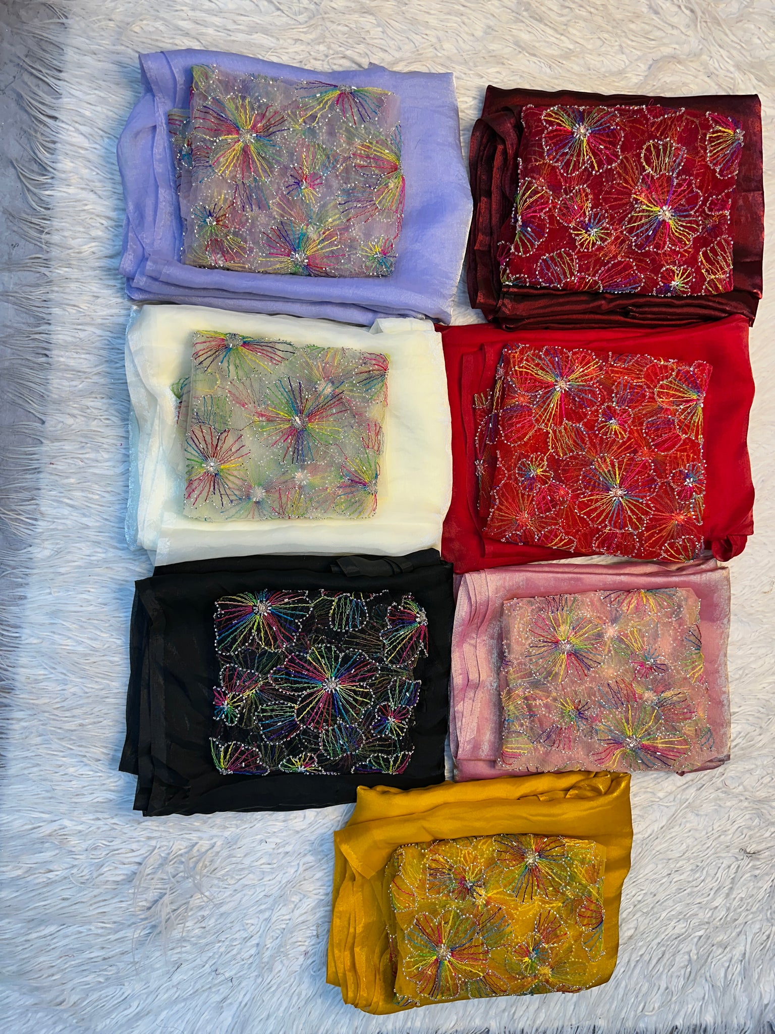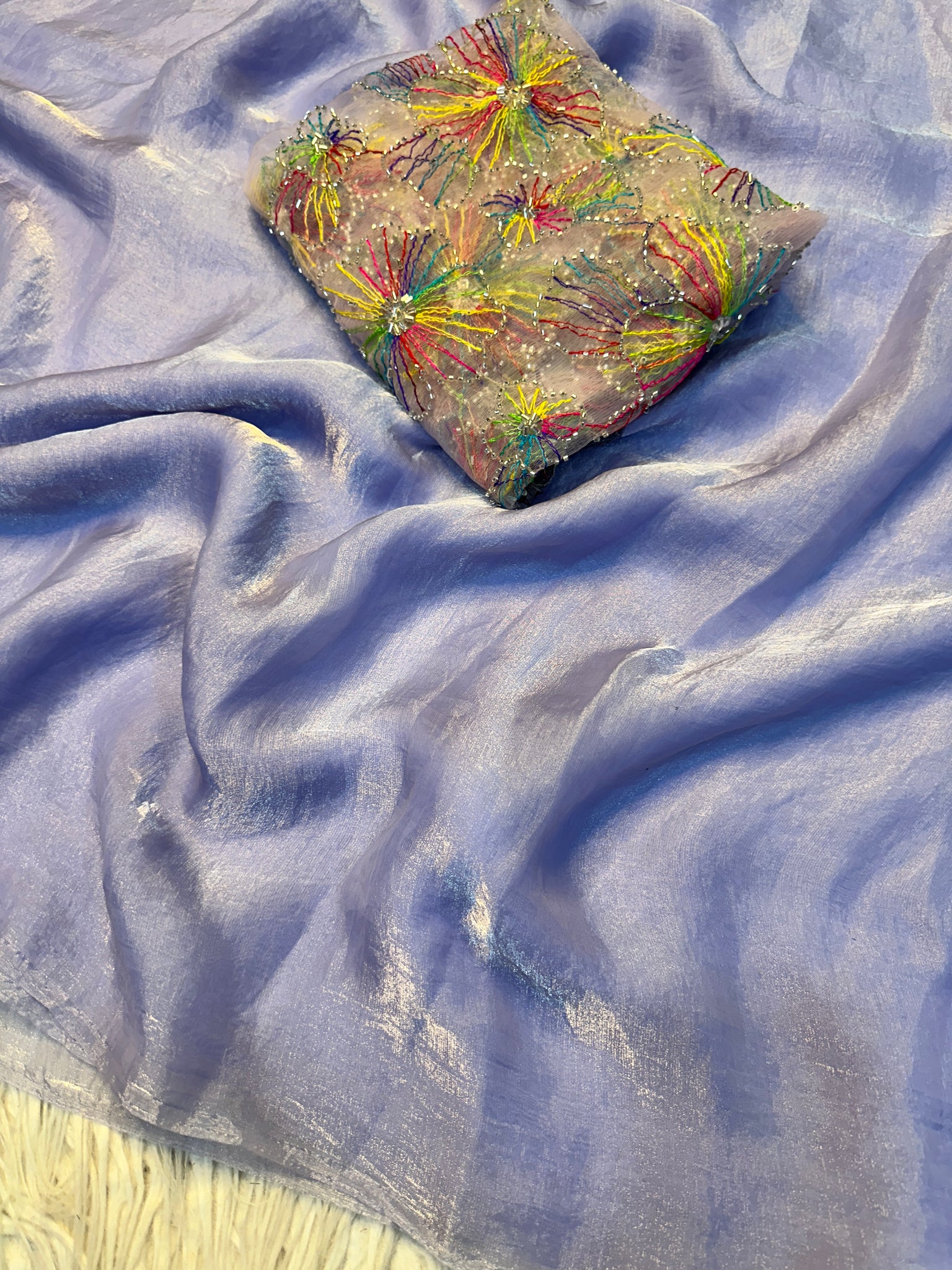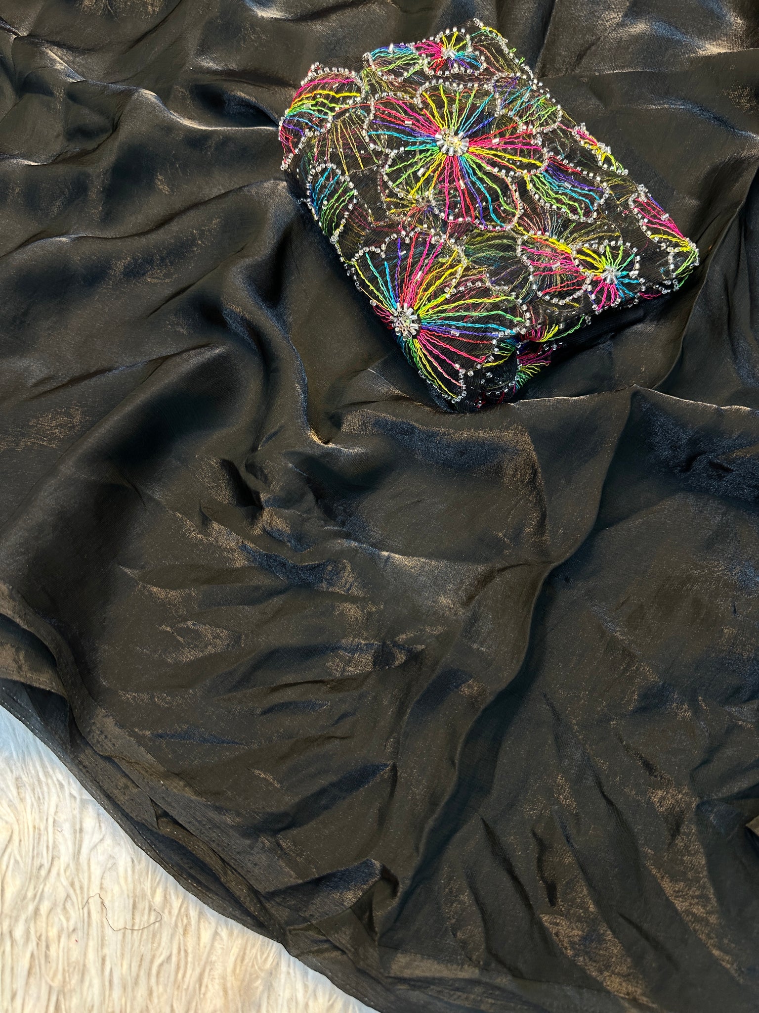 Blouse Work : Net With Beautiful Multi Color Ribbion n Beads Work
