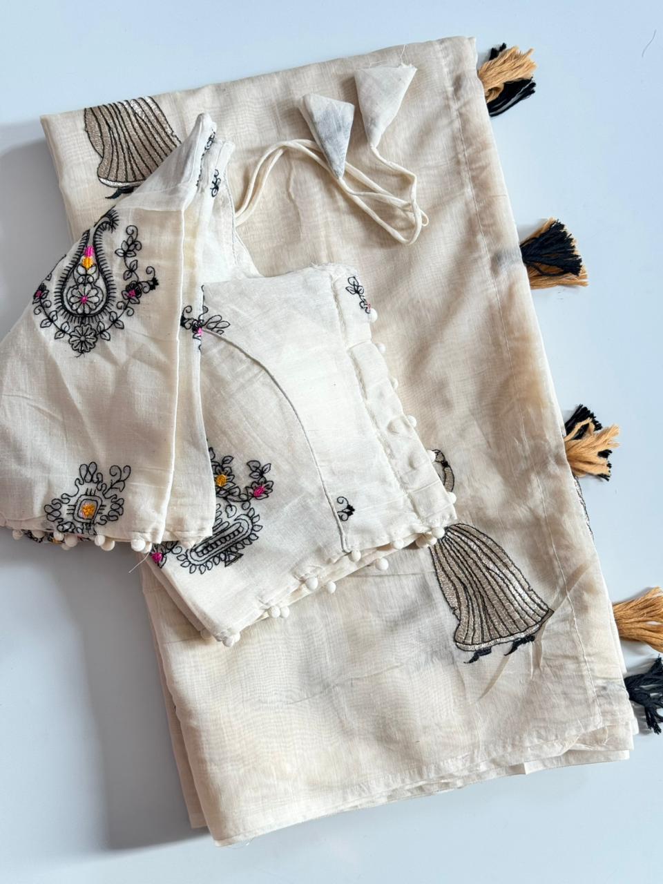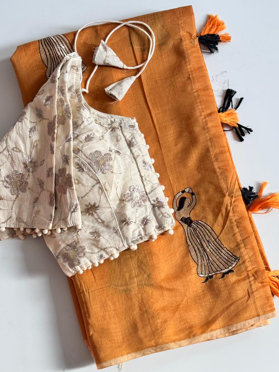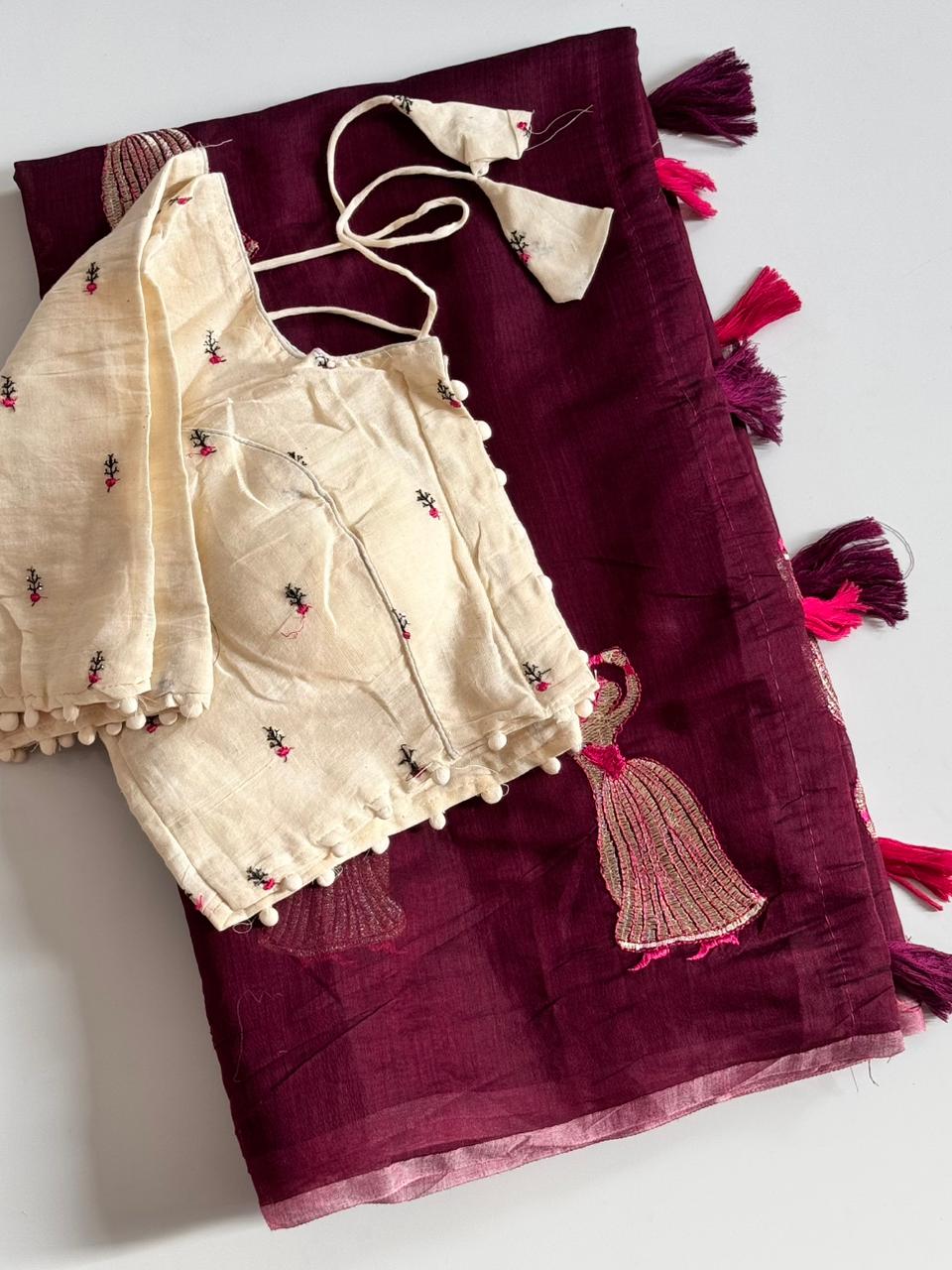 Cotton tassels attached on saree