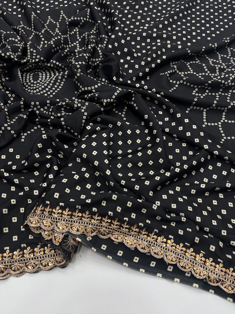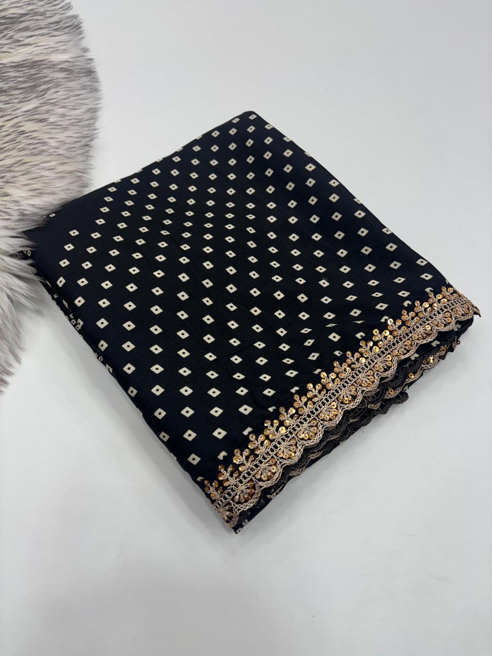 Saree Work : Designer Printed Rich Pallu n Sequence Lace