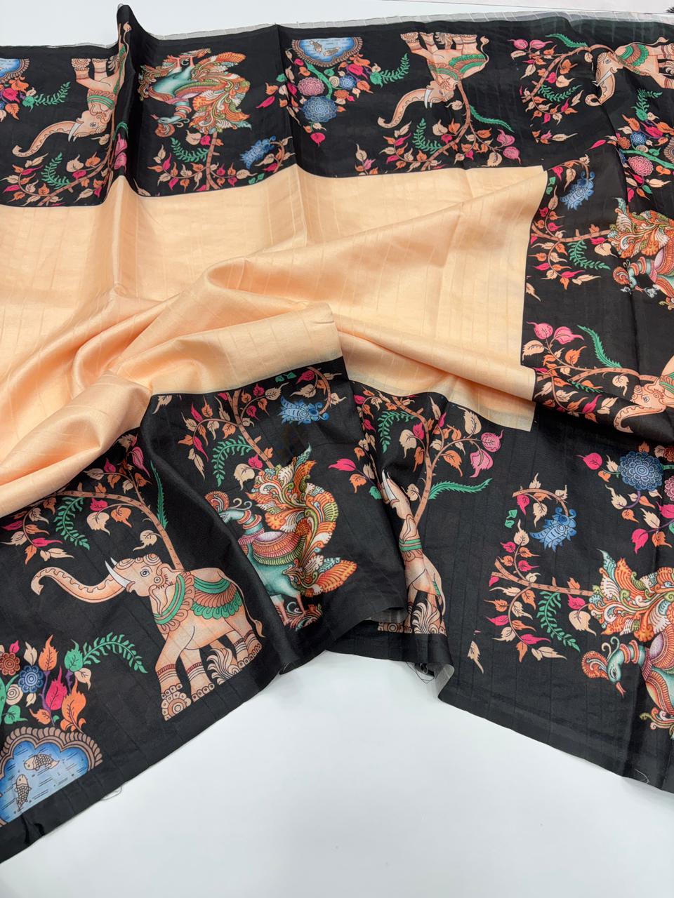 Saree Work : kalamkari digital print comes with tussle on pallu