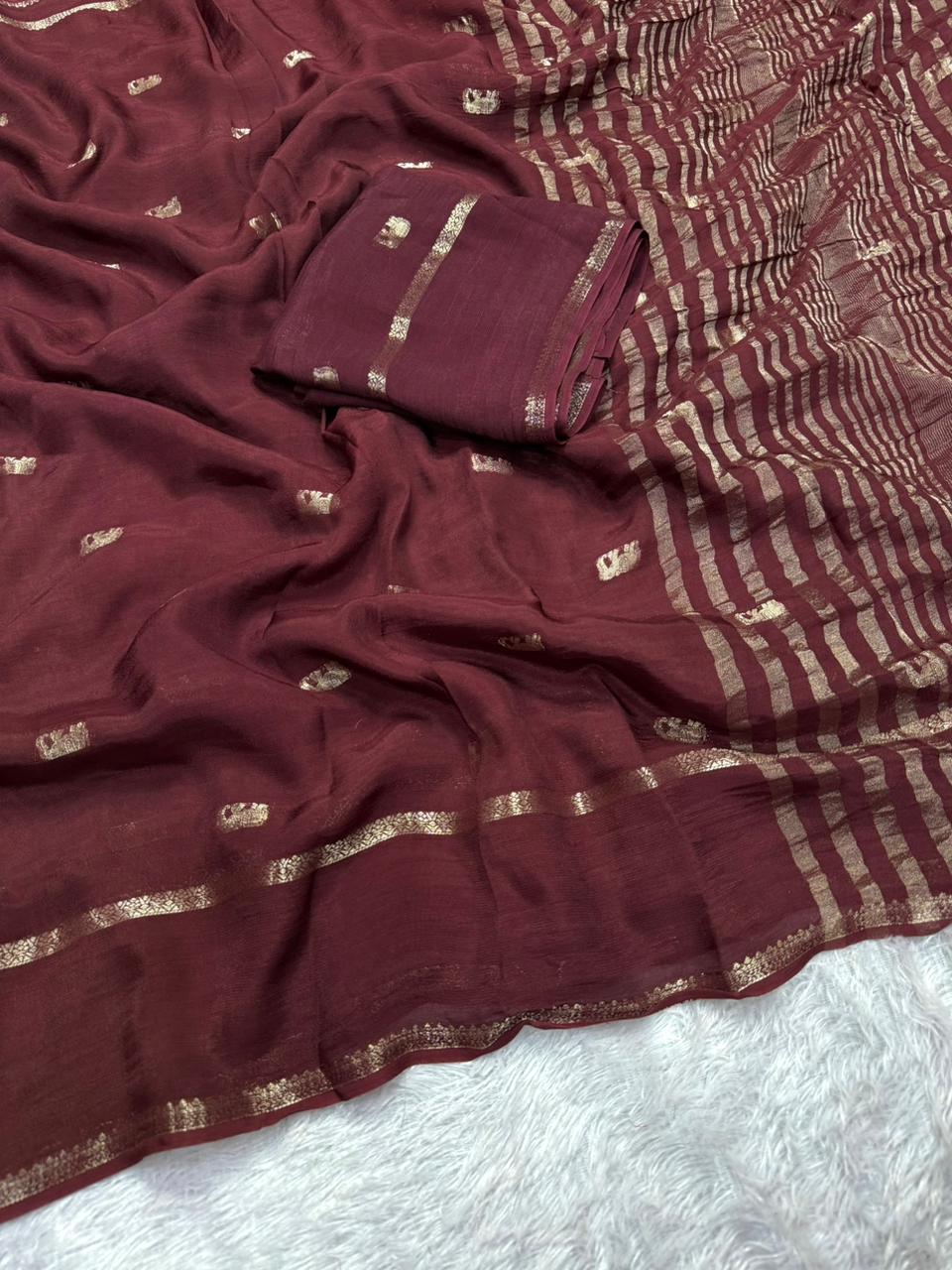 Traditional Function Wear Brown Color Pure Soft Viscose Zari Work Fancy Designer Saree With Blouse
