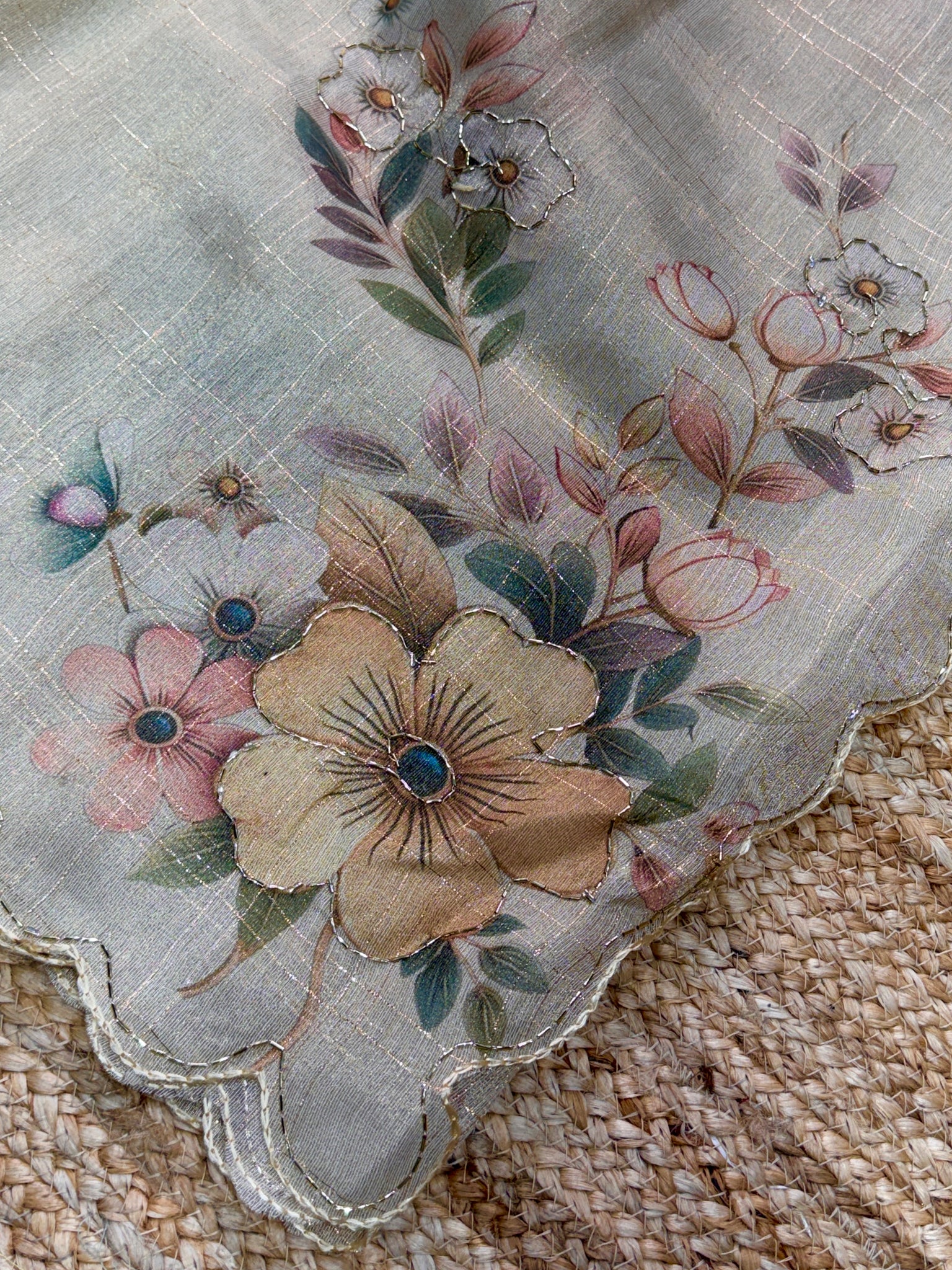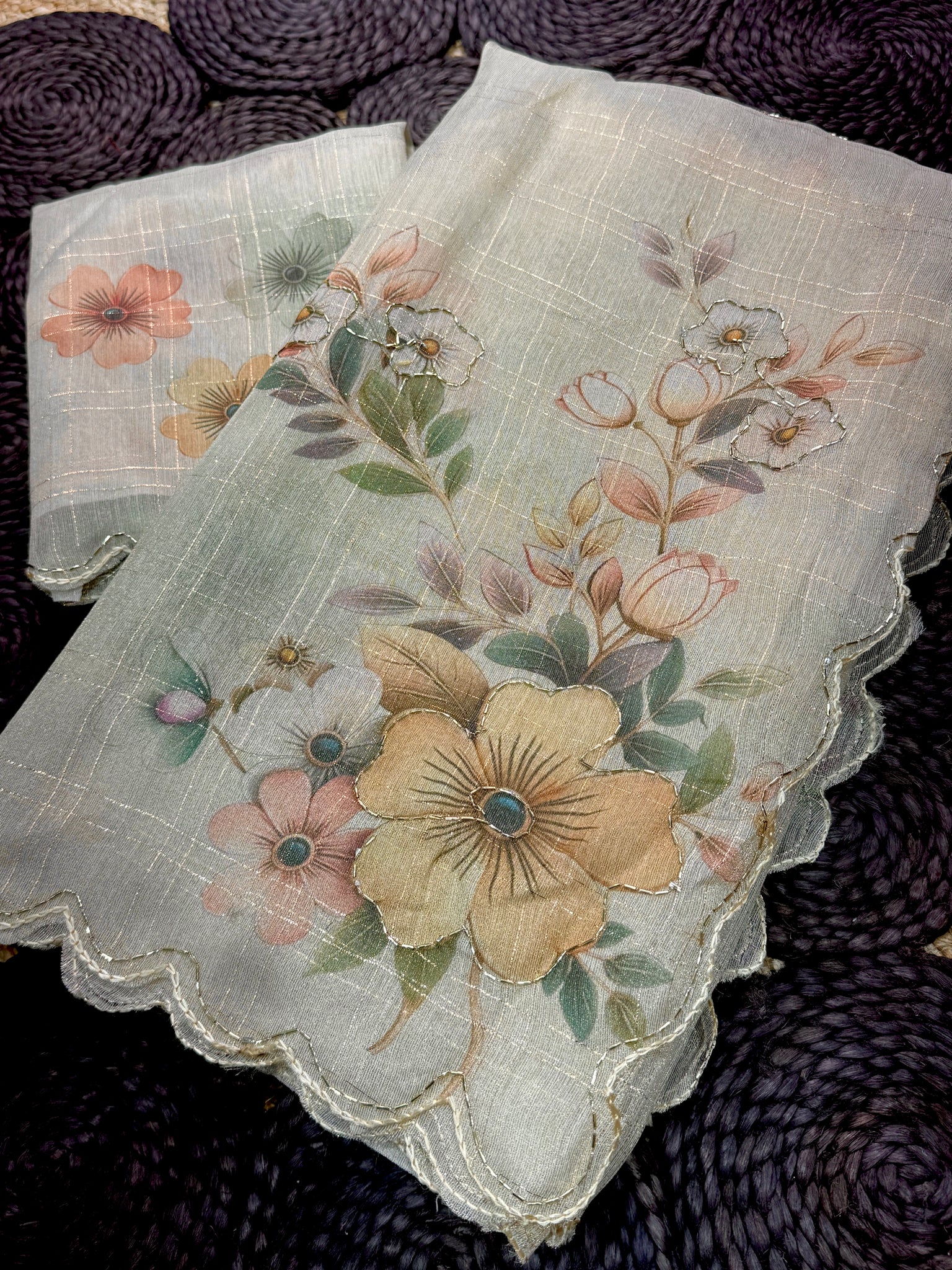 Saree Work : Digital Print With Sequence Bids Outing Work Zari Jacqurad Checks